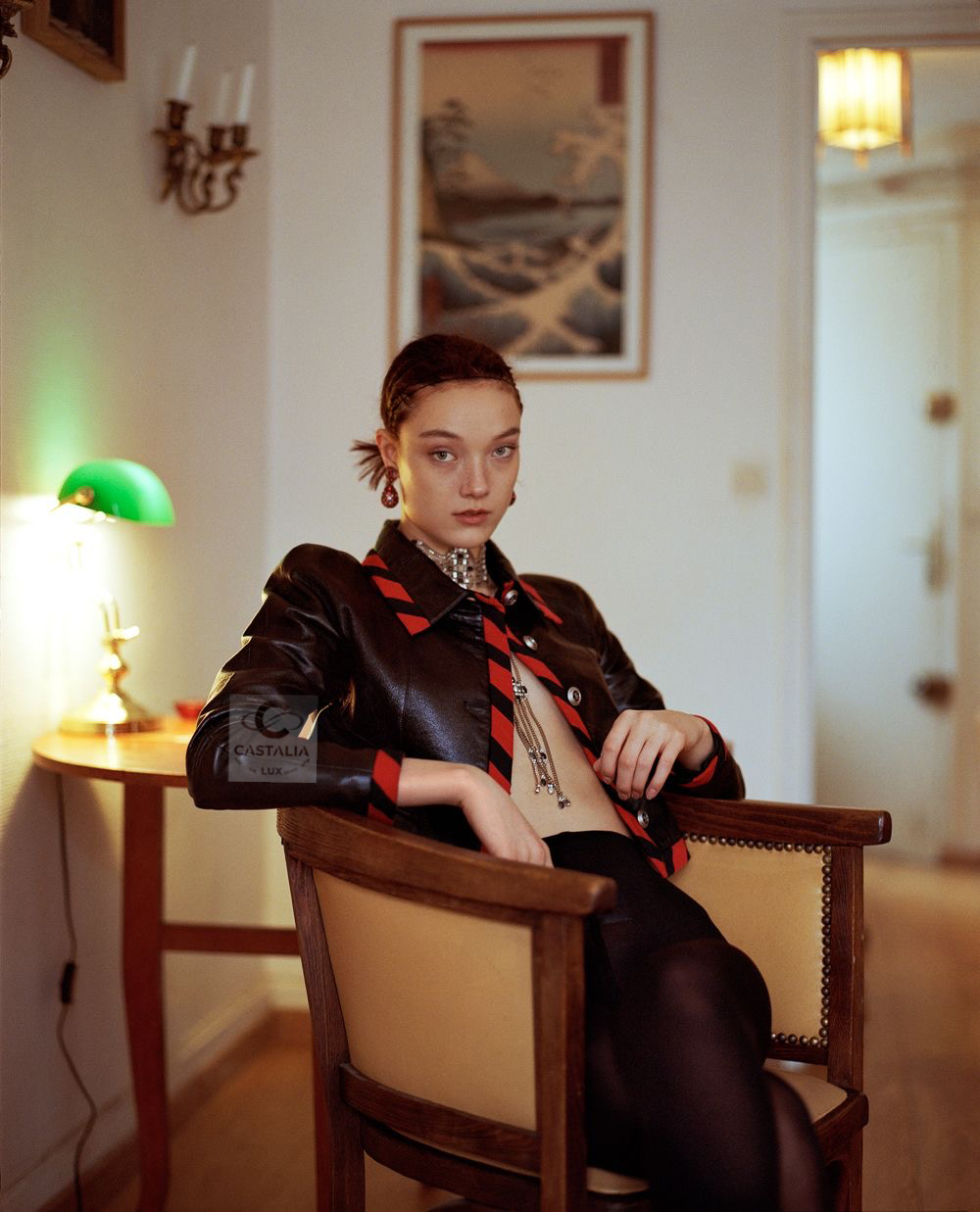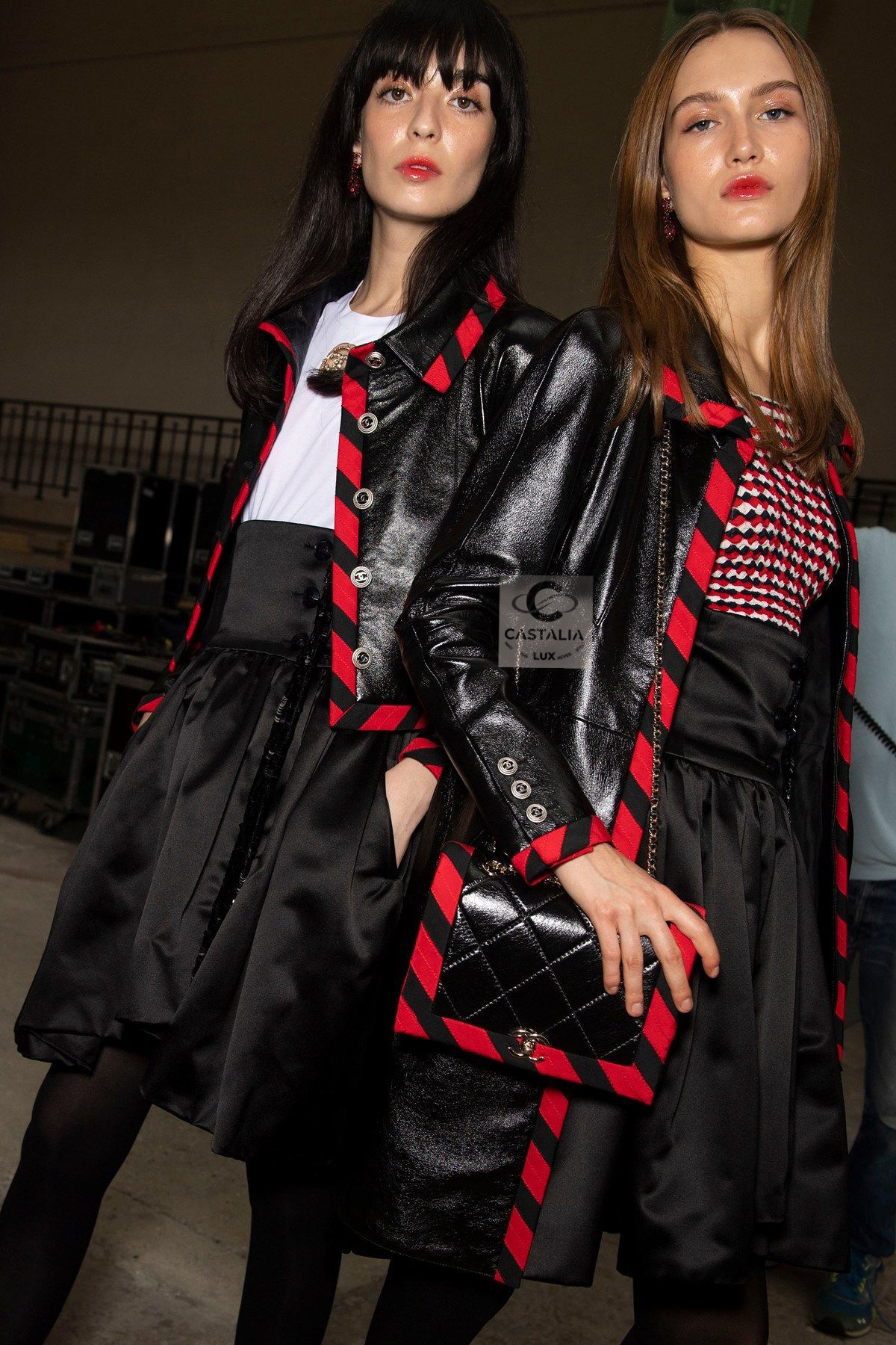• Contrast red stripe trim — graphic, disciplined, and aggressive in its clarity; a Chanel border rewritten as urban signage