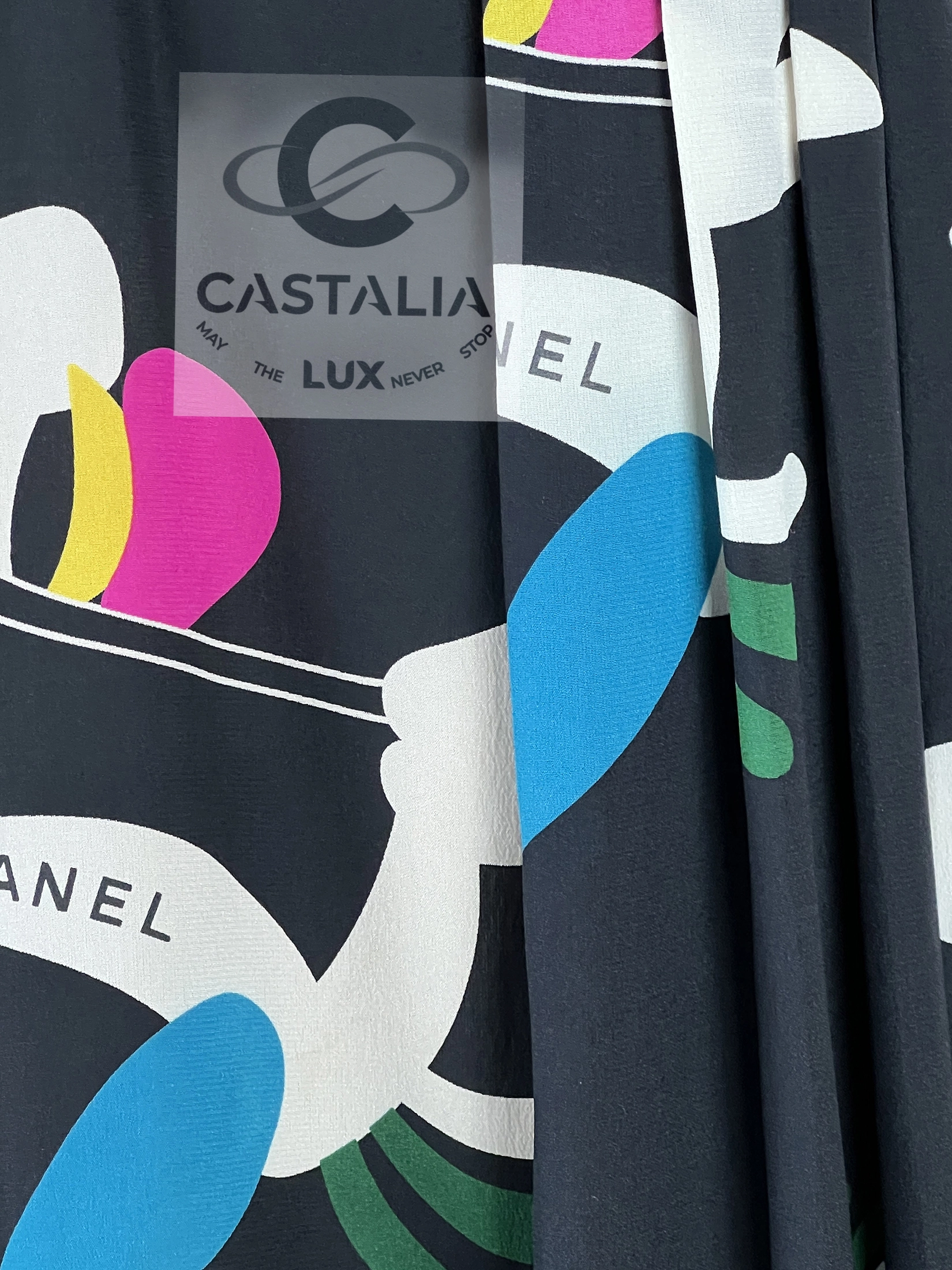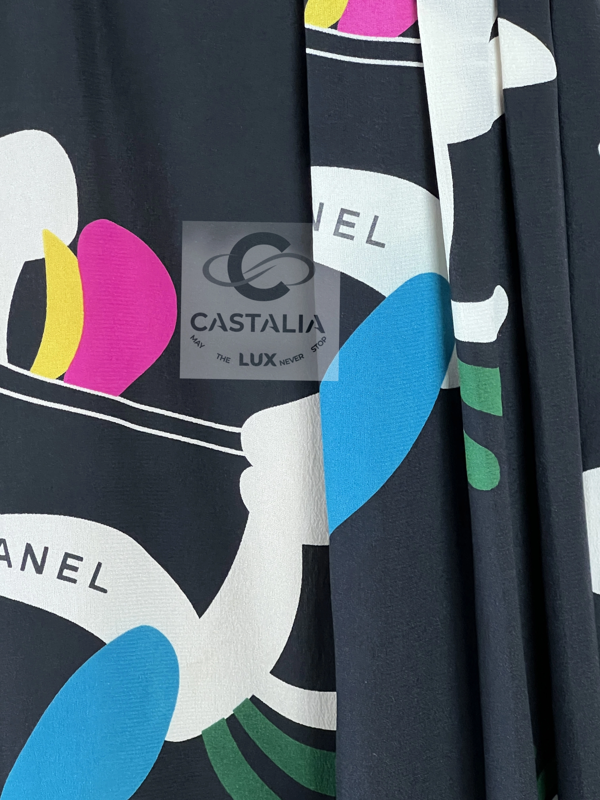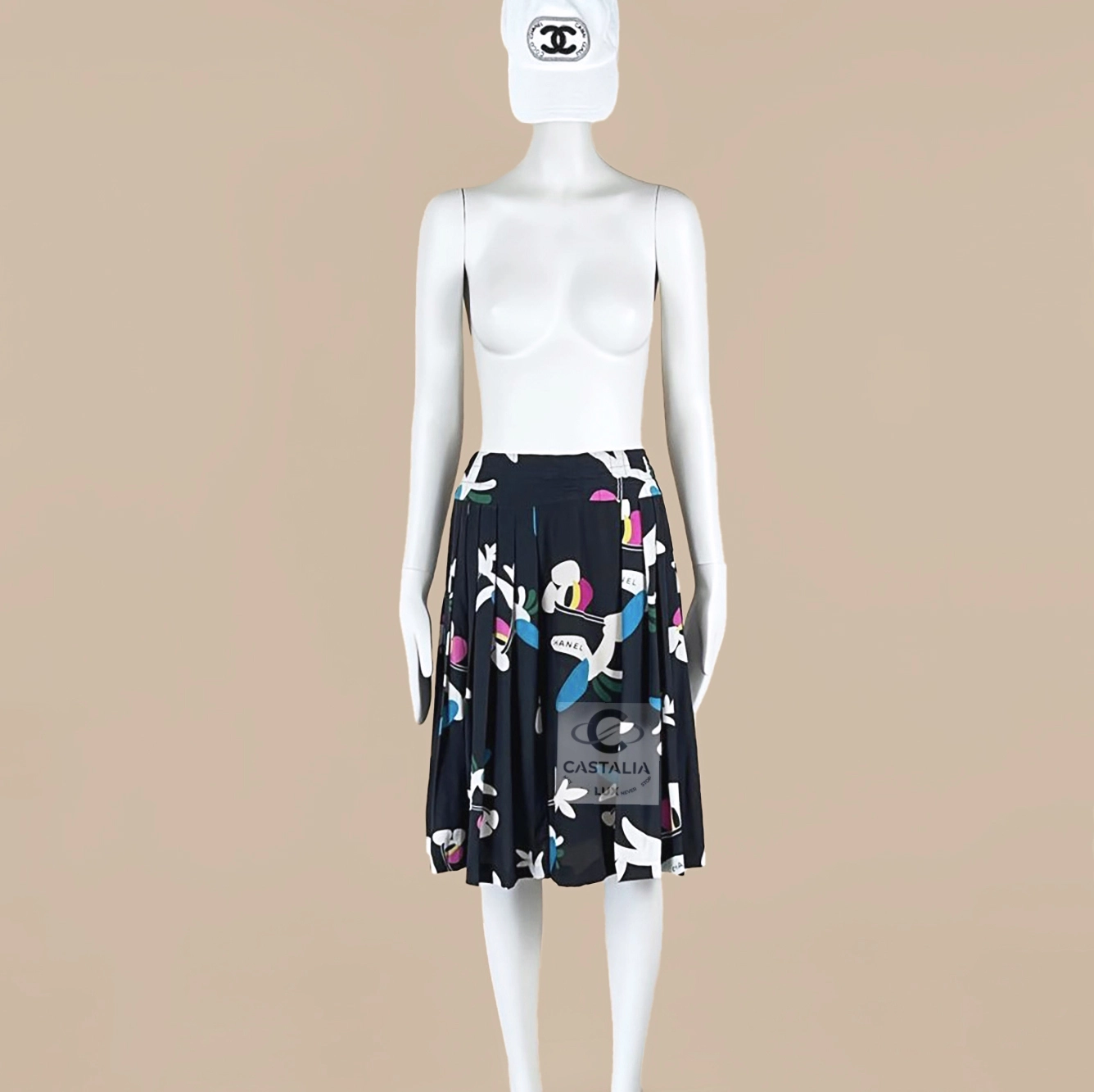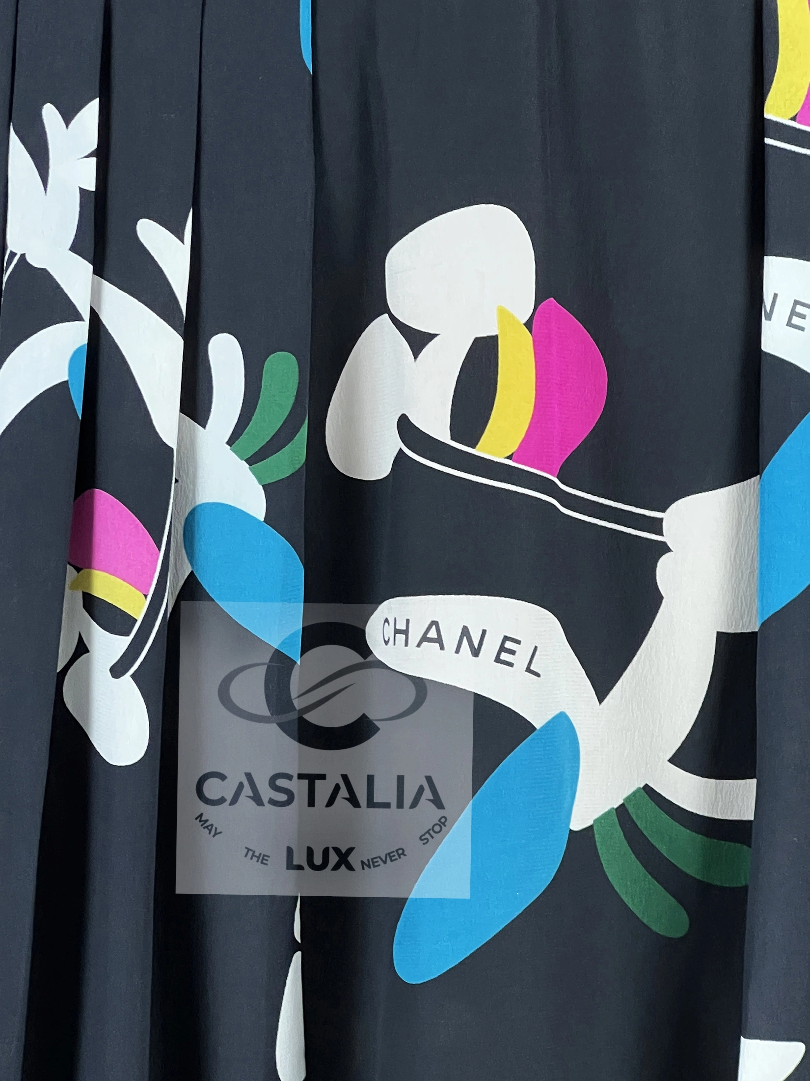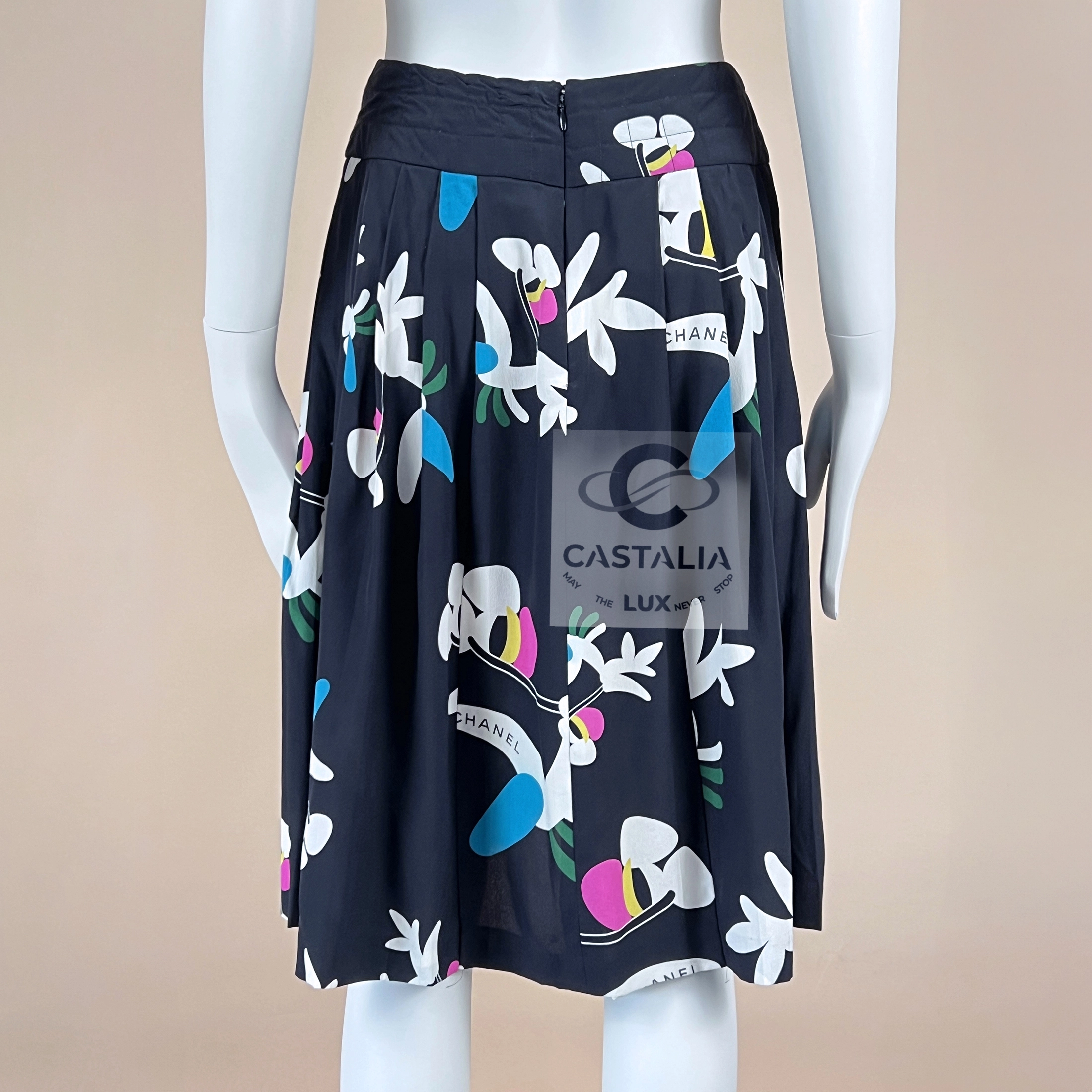 CHANEL Collectible Silk Skirt with Logo Planes Pattern
