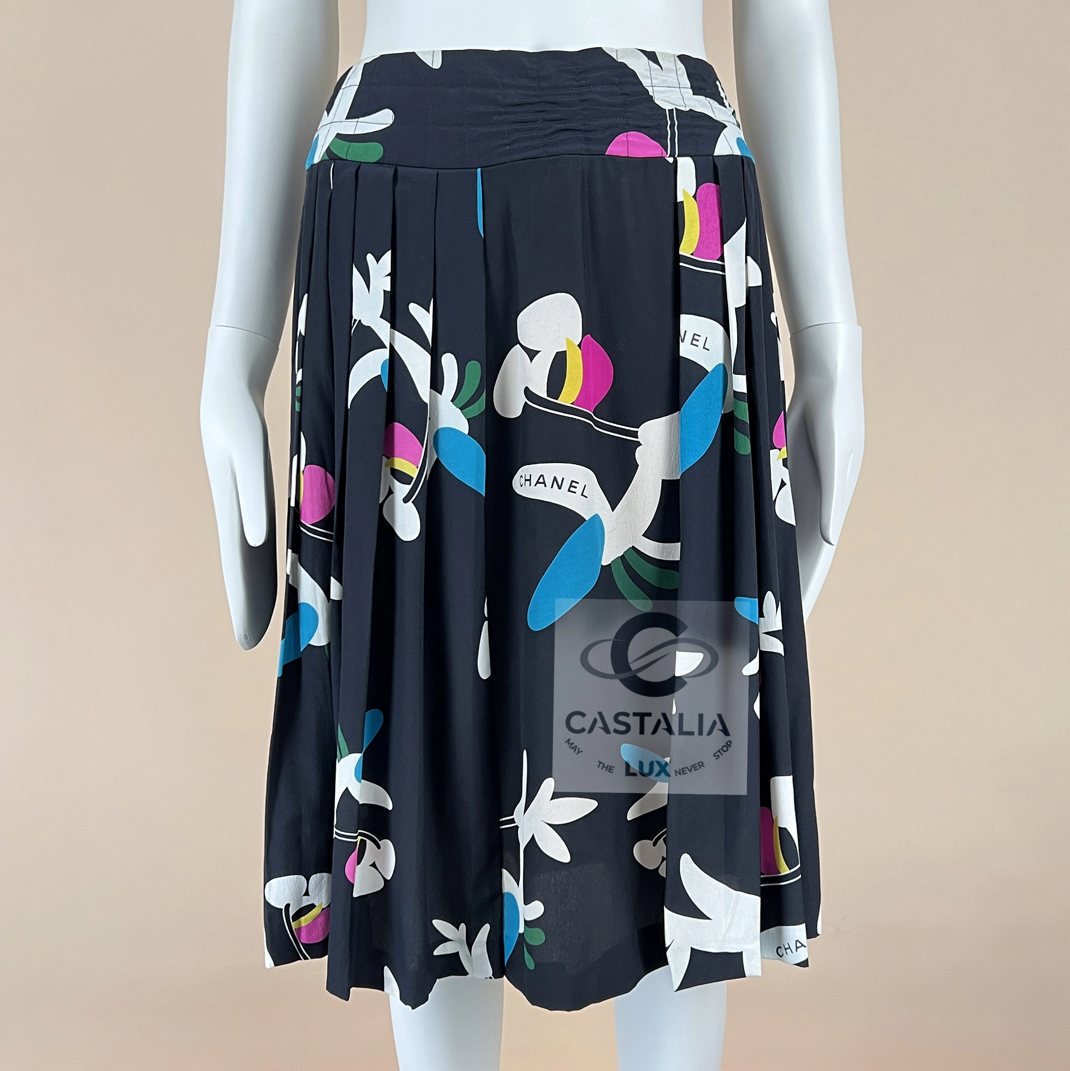 CHANEL 2000 Collectors CC Planes Pleated Skirt 36 FR
