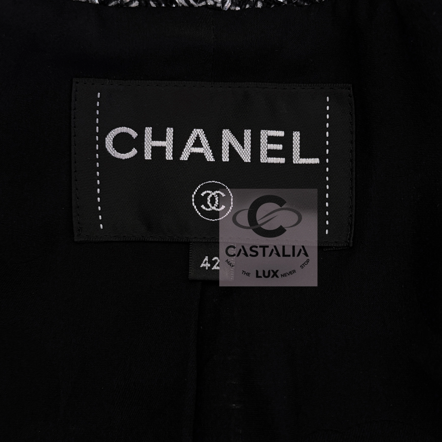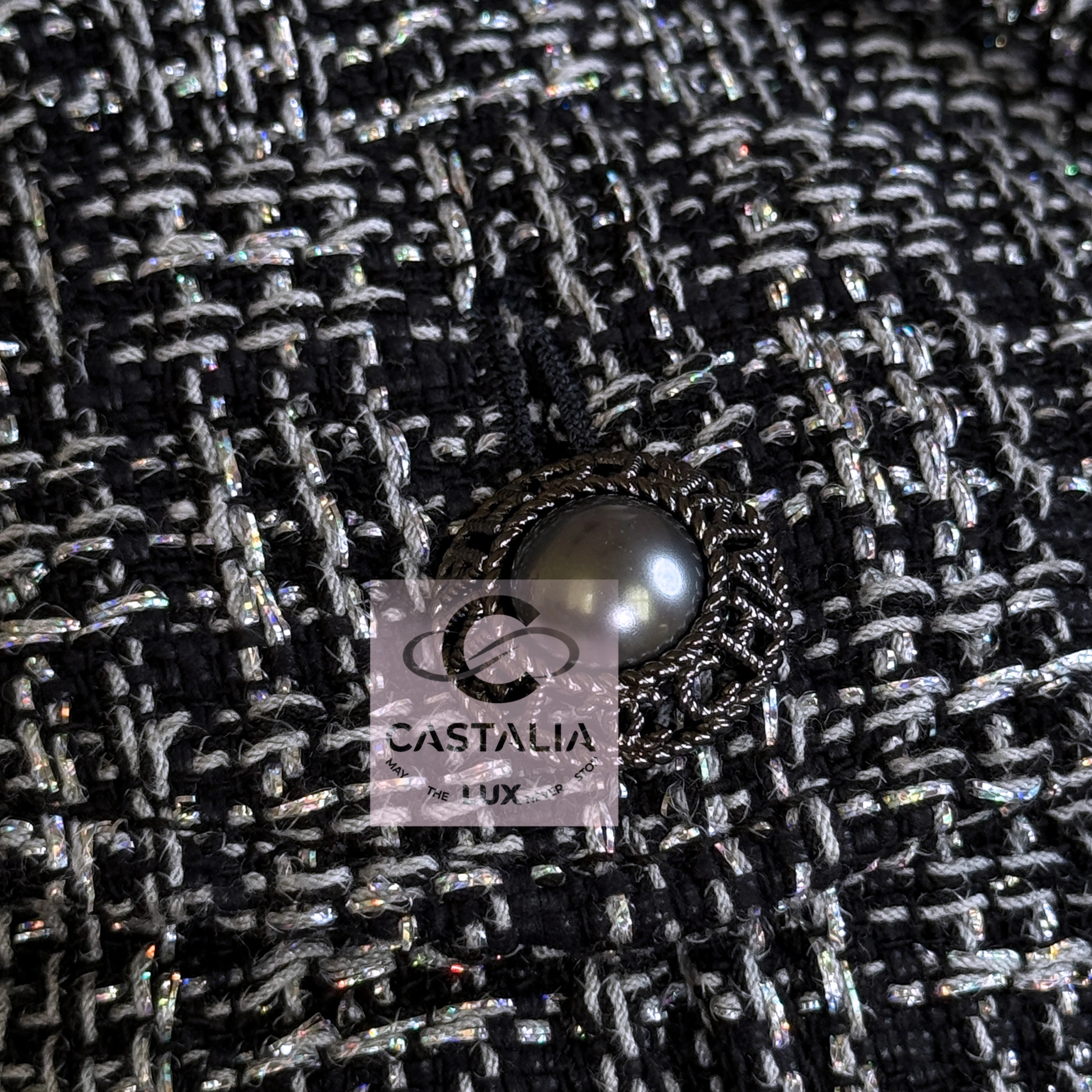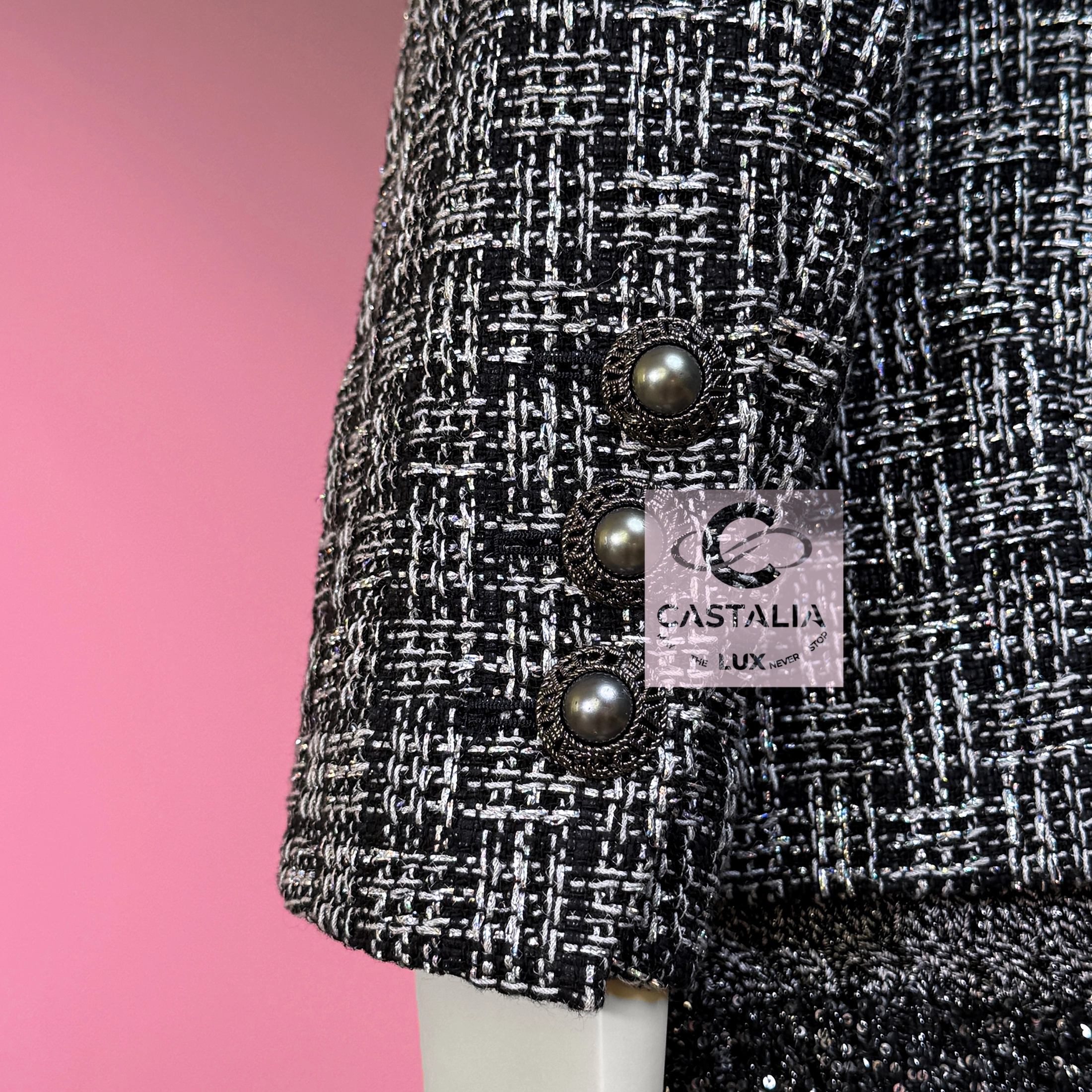 CHANEL · Black Shimmering Lesage Tweed Jacket with Pearl Buttons