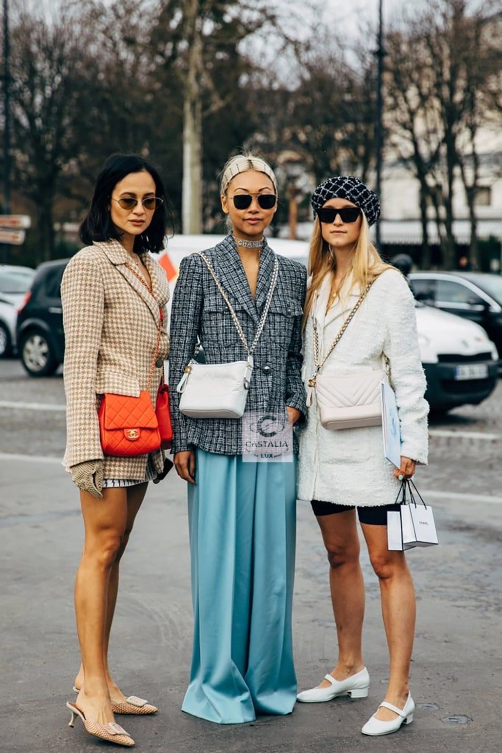 — majestic pearl-shaped buttons, circled in CHANEL lettering like orbiting planets,