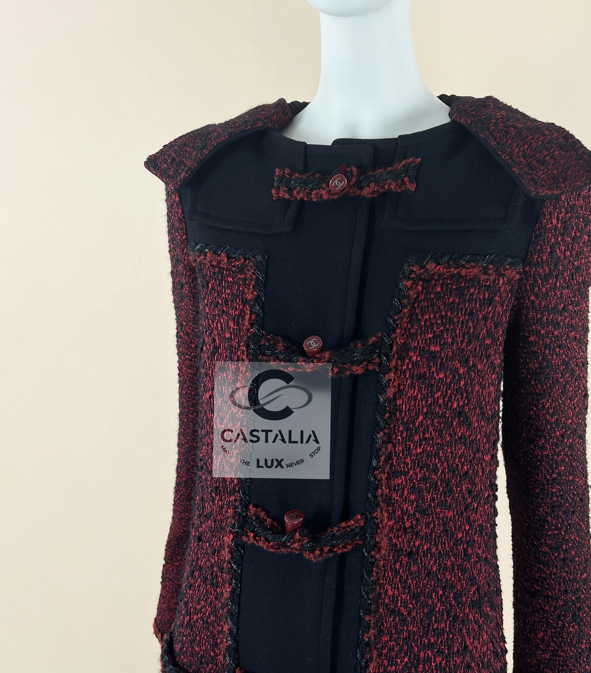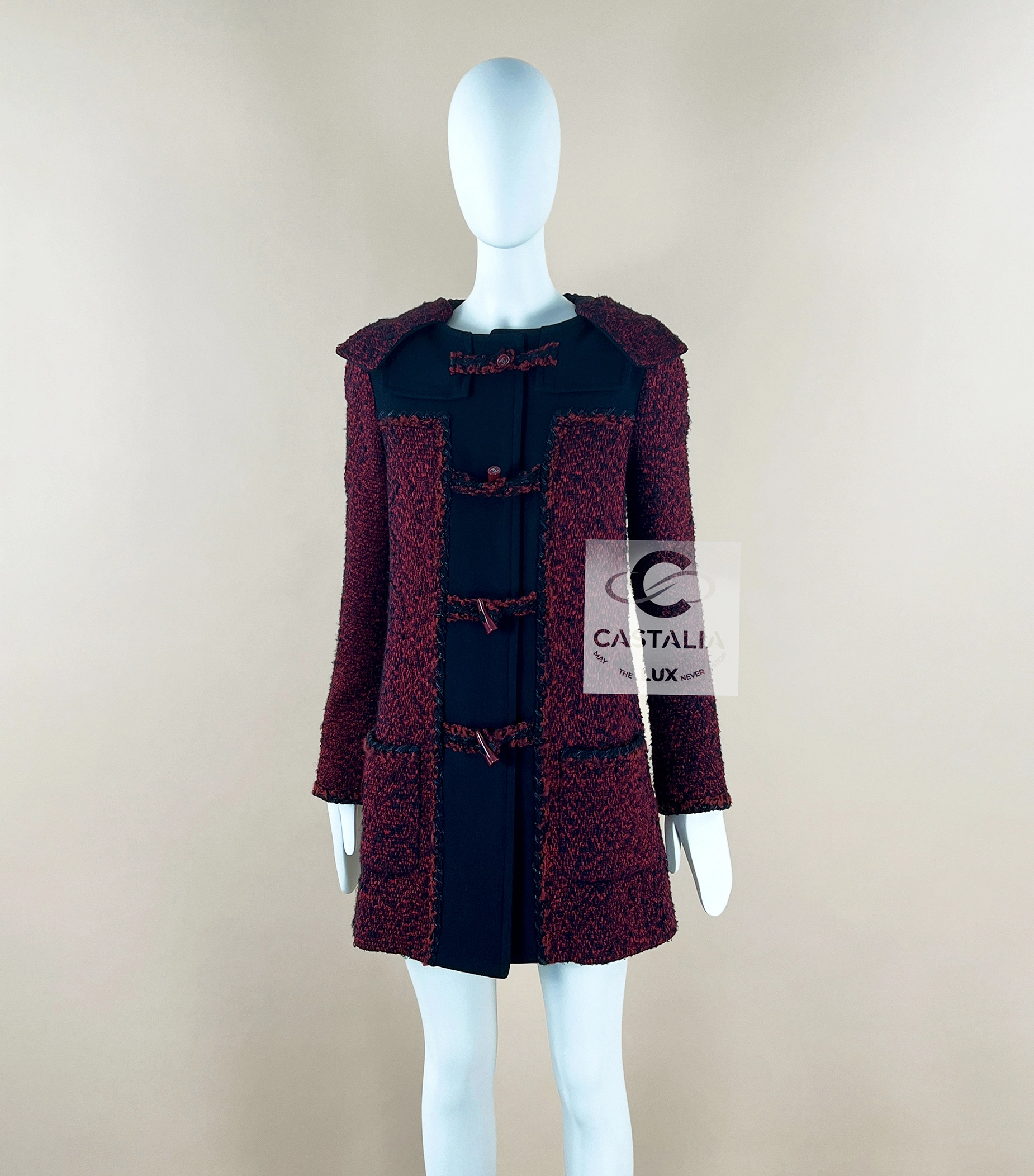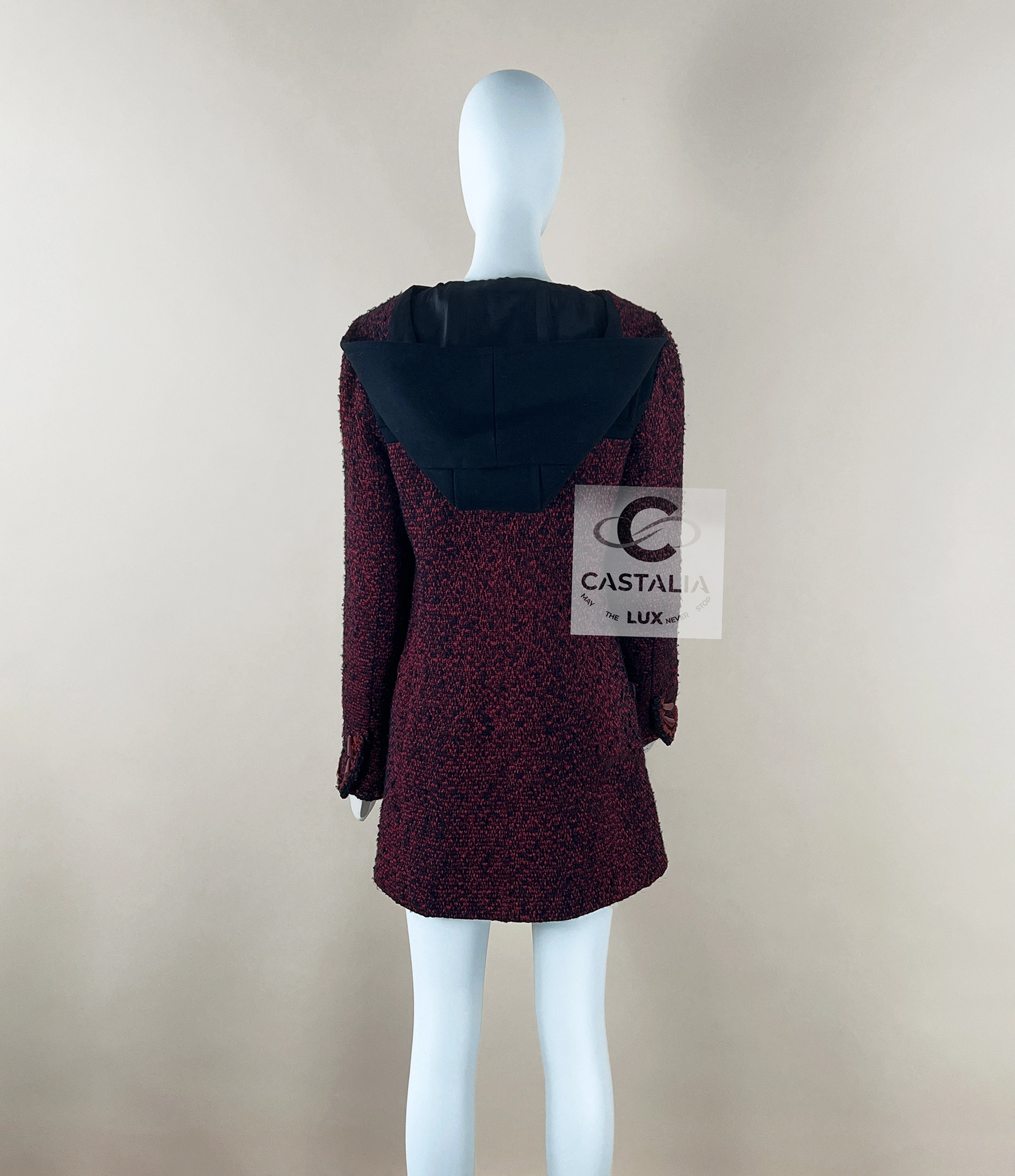 CHANEL Collectible Burgundy Tweed Parka Coat