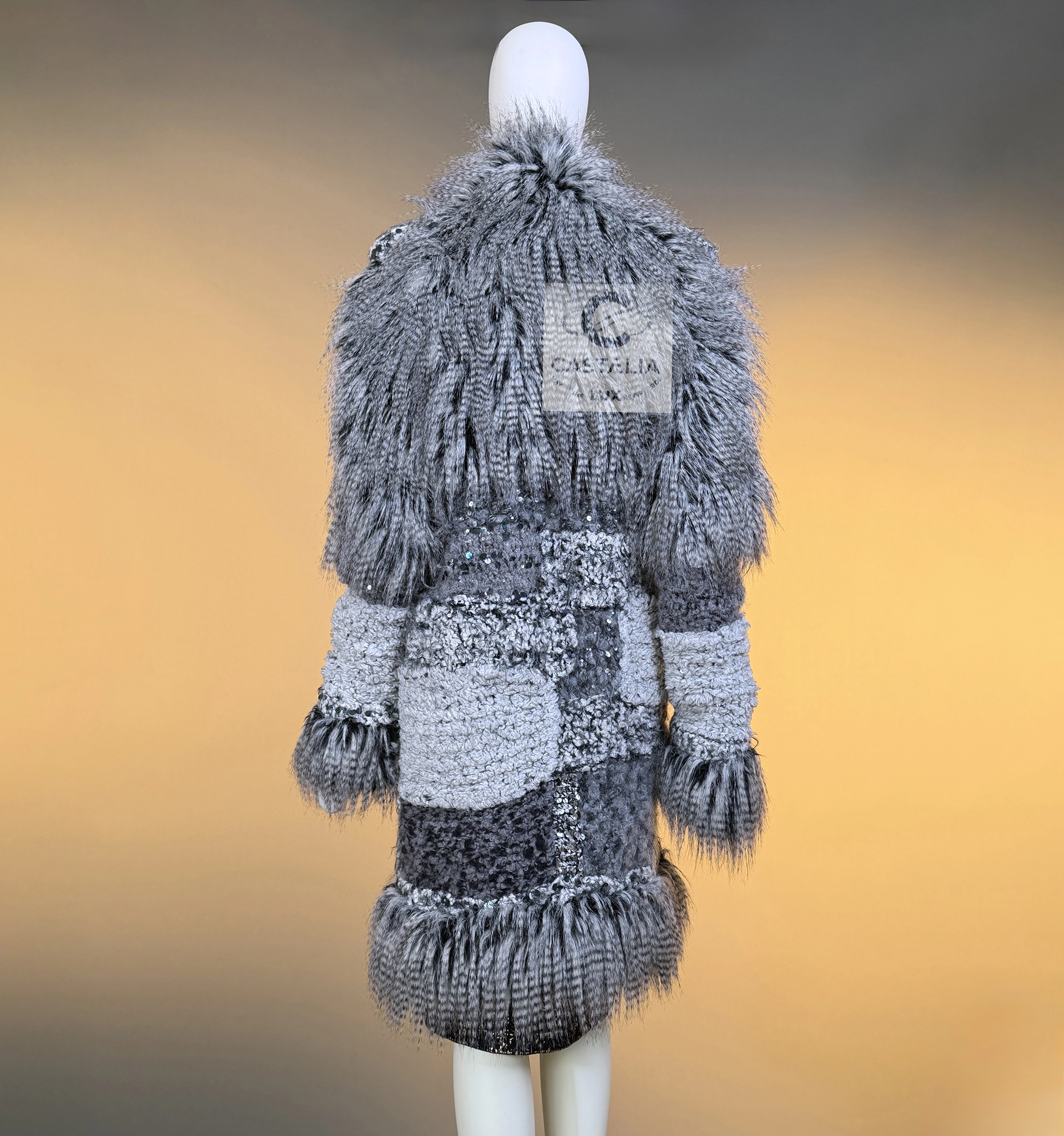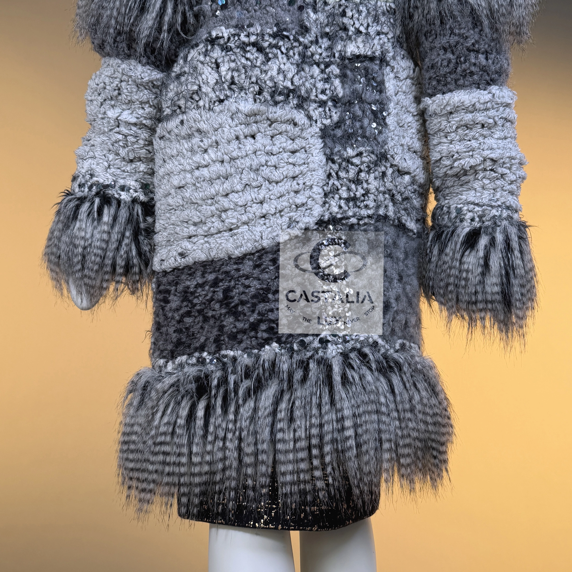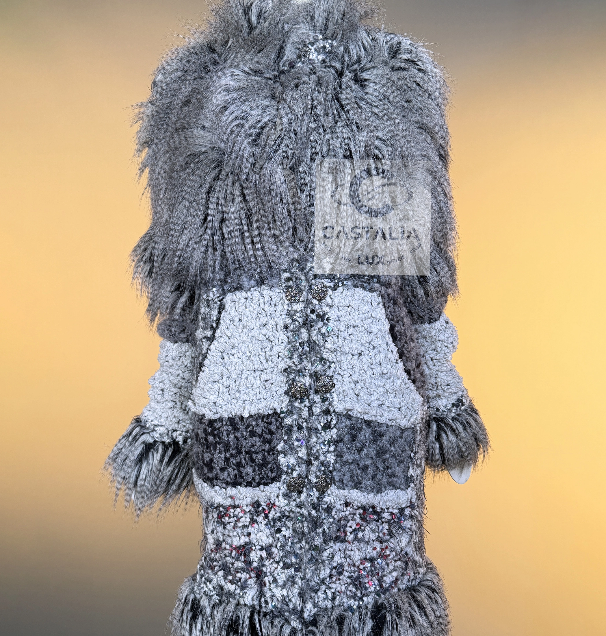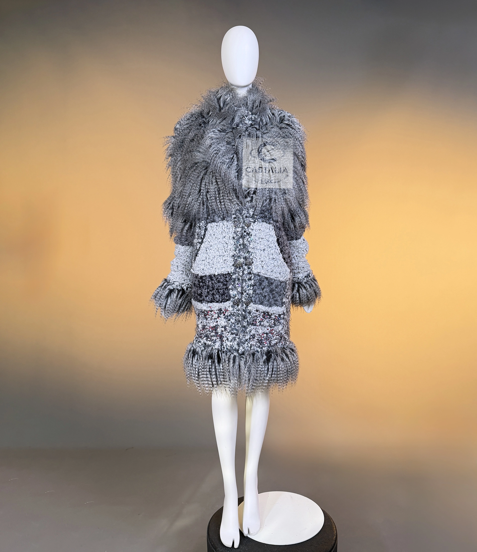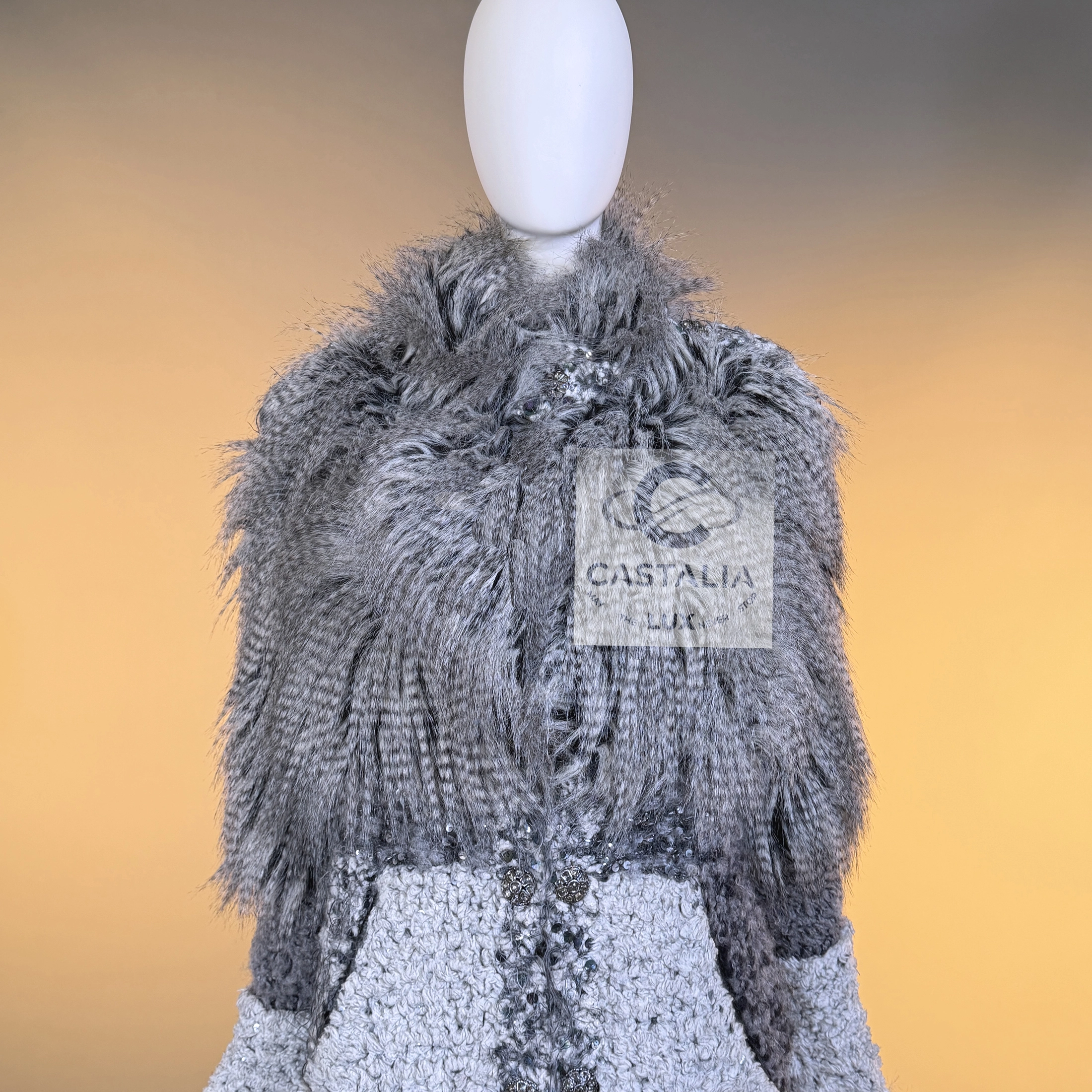 CHANEL · Rarest Museum-Level Grey Fluffy Embellished Tweed Coat
