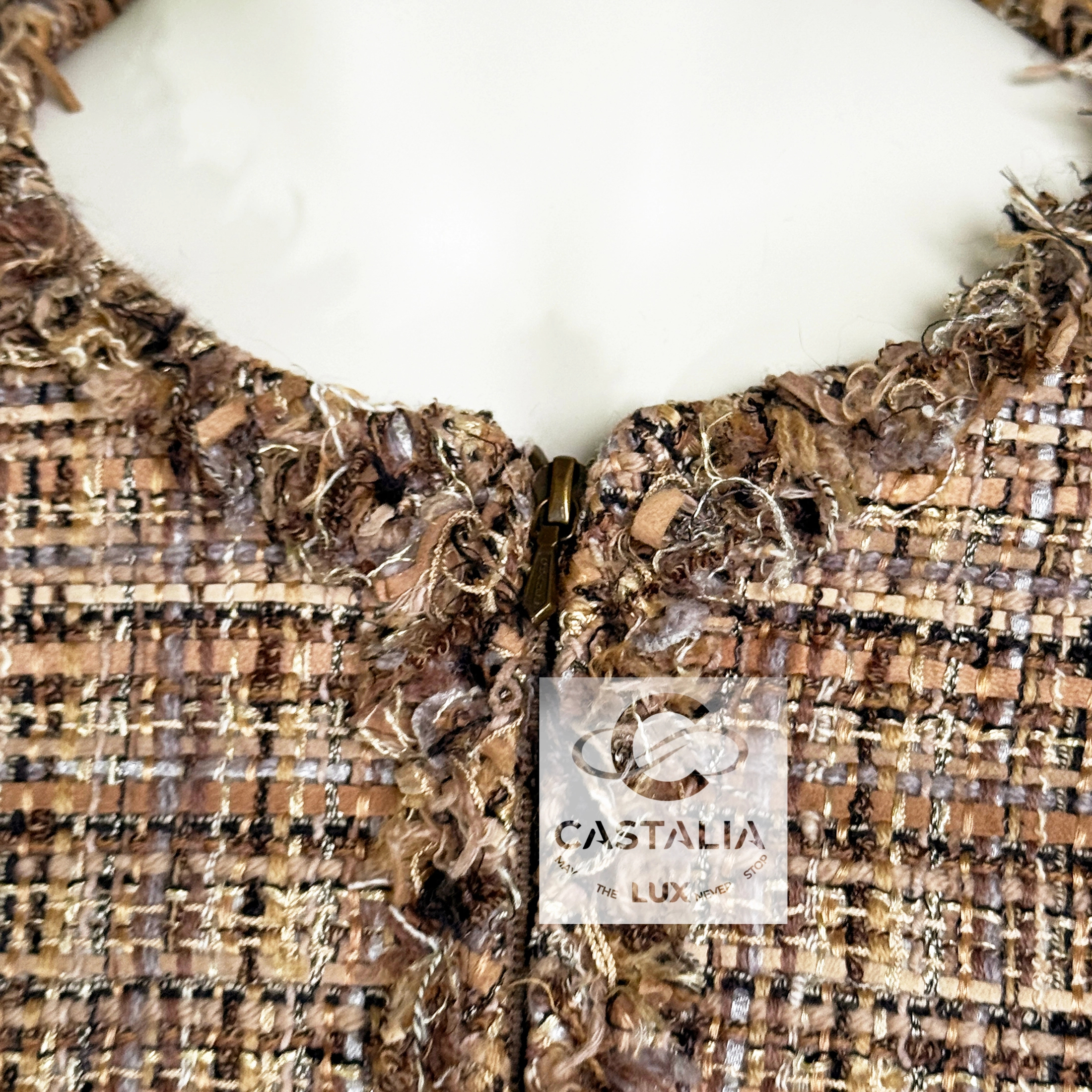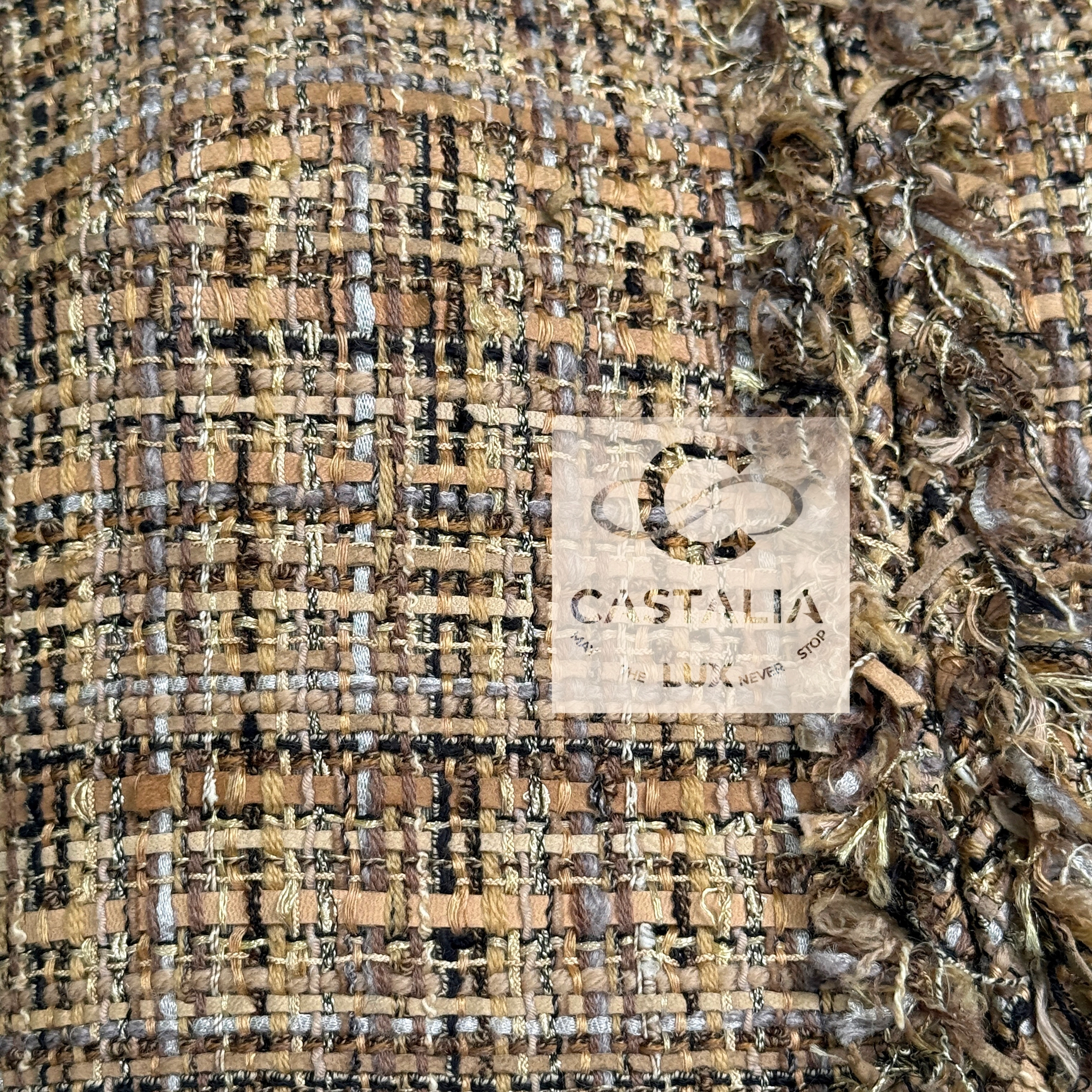 — made of precious sand-beige ribbon Lesage tweed with interwoven suede & leather ribbons