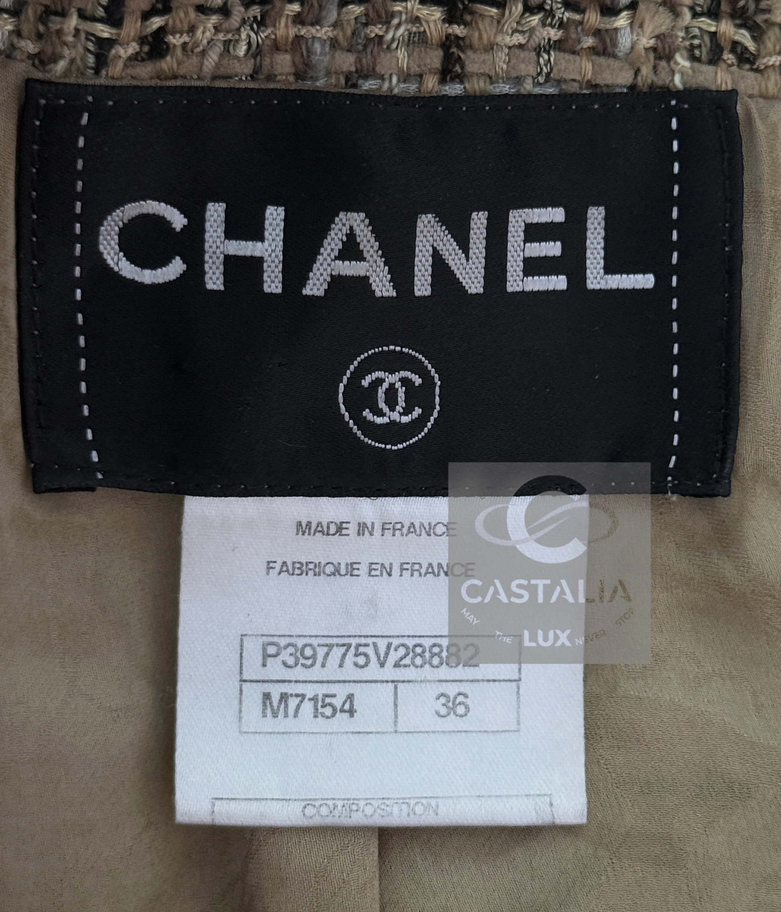 CHANEL 11K$ Beige Ribbon Tweed & Suede Jacket 36 FR