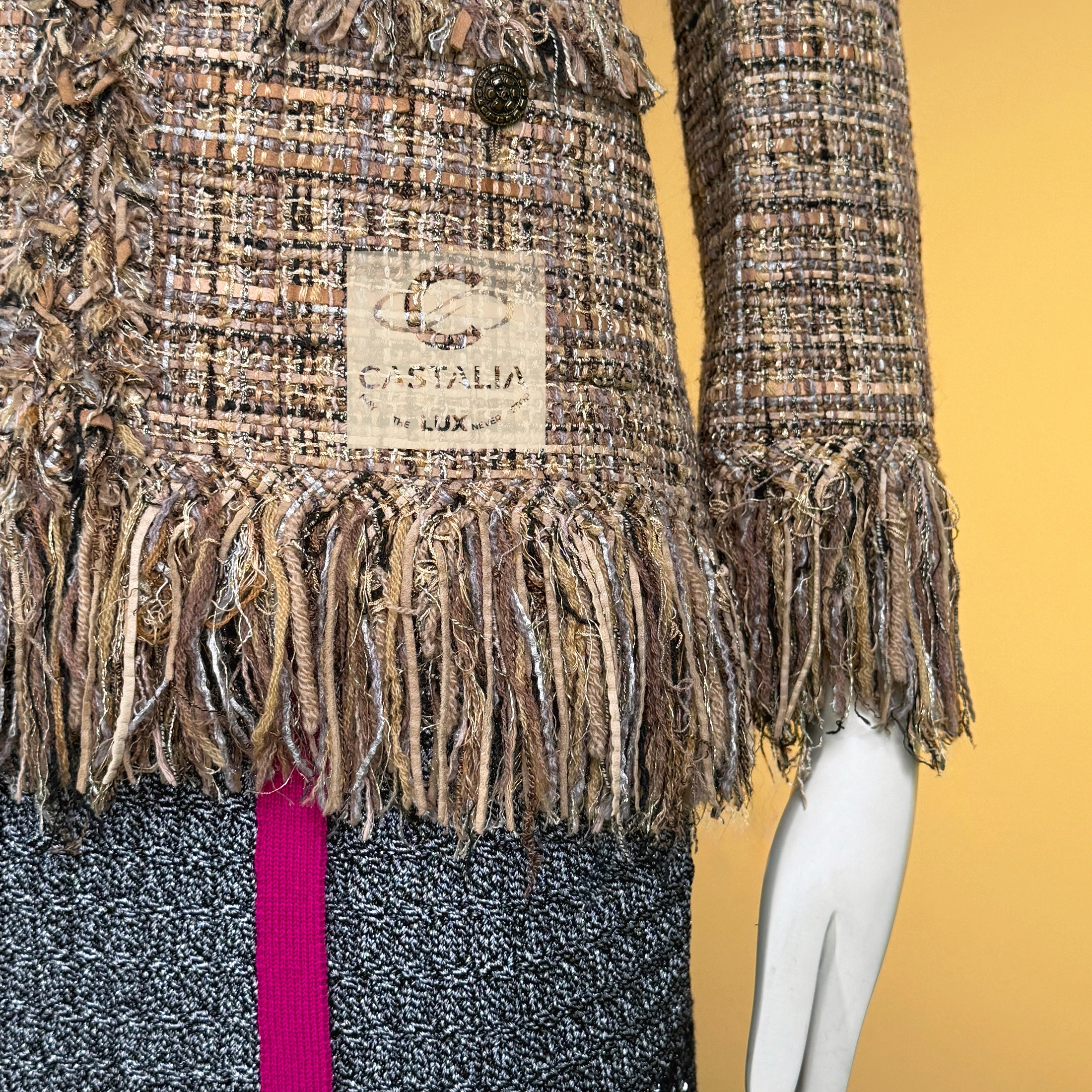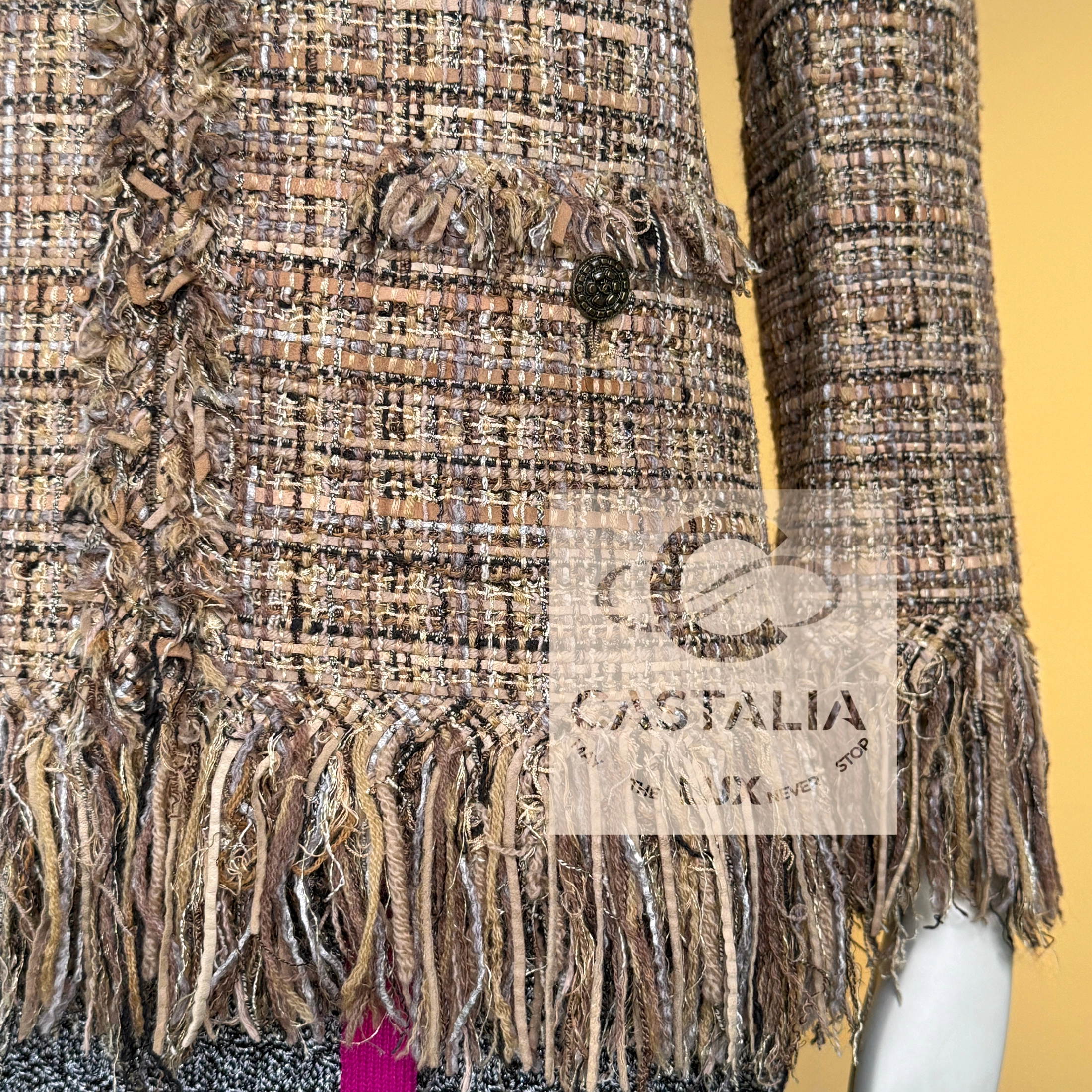 — silhouette is crowned by Chanel’s signature frayed fringes, tracing hem and cuffs like crystallized