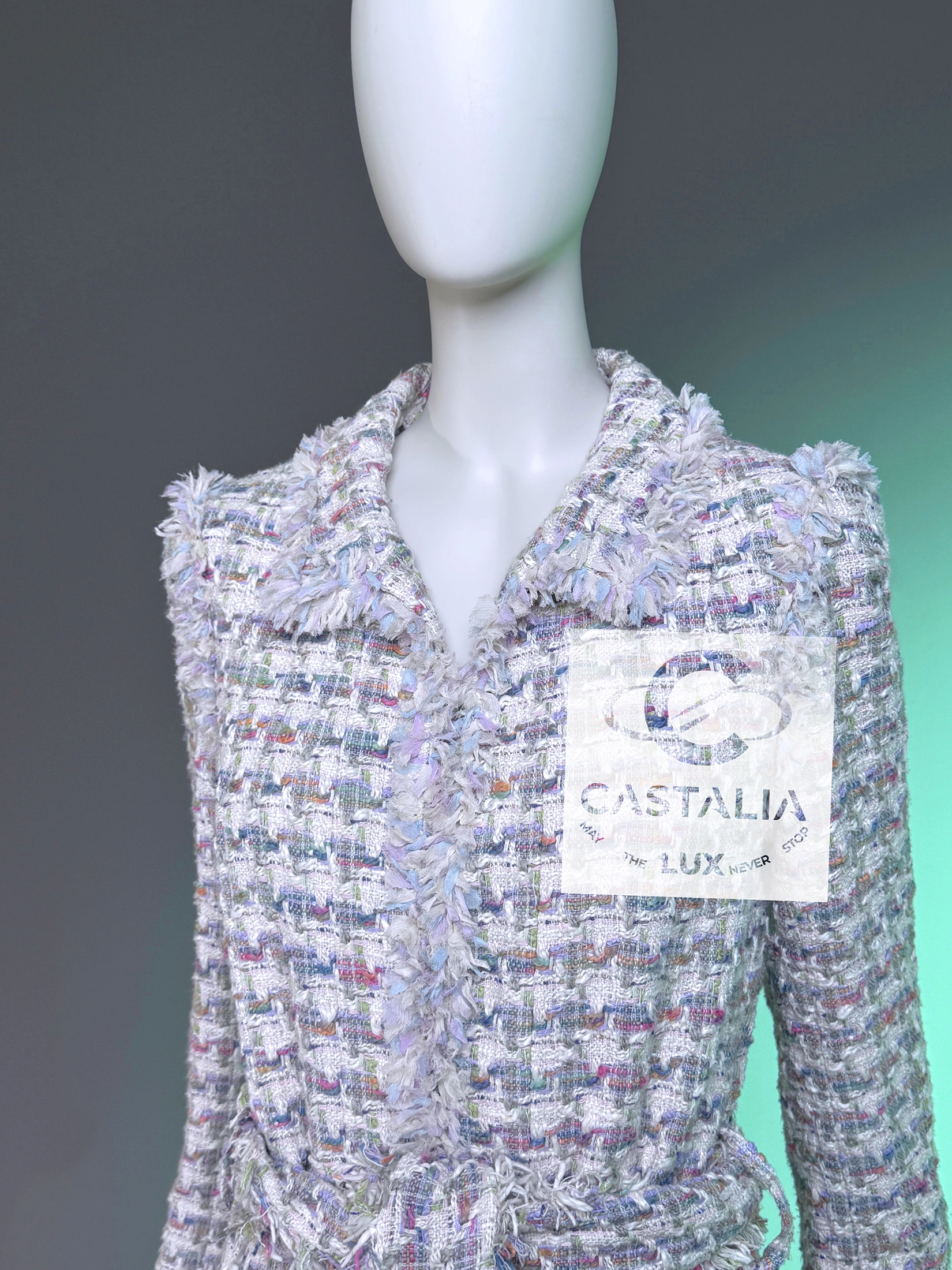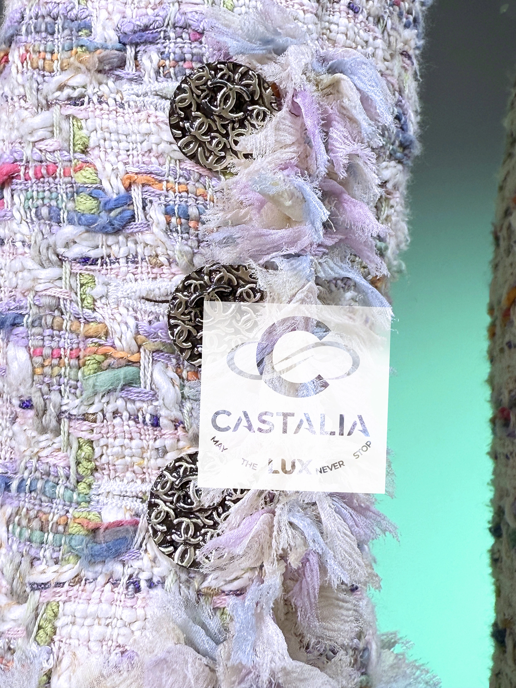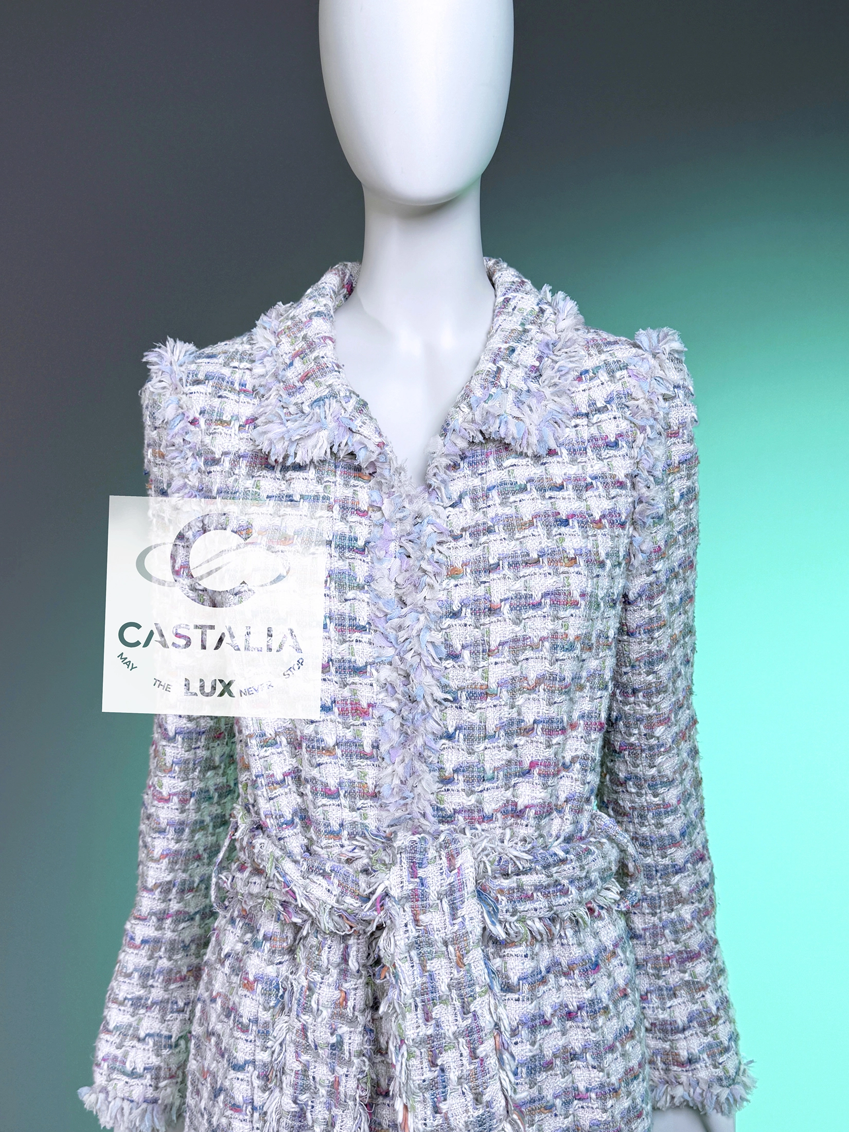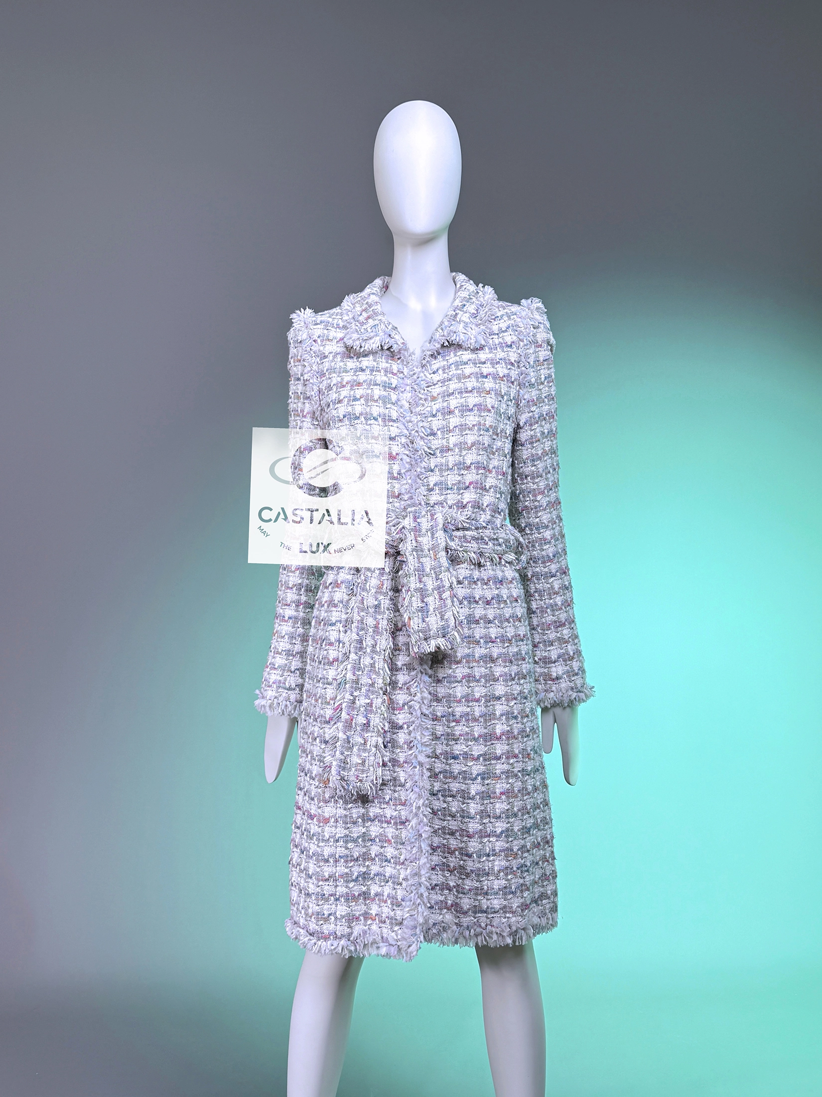 — Woven in soft pastel threads that echo the first bloom of Parisian spring, the coat features Chanel’s signature Lesage tweed—textured, nuanced, and intricately alive