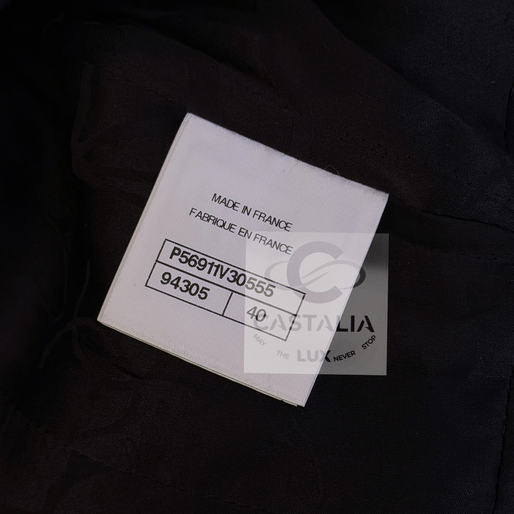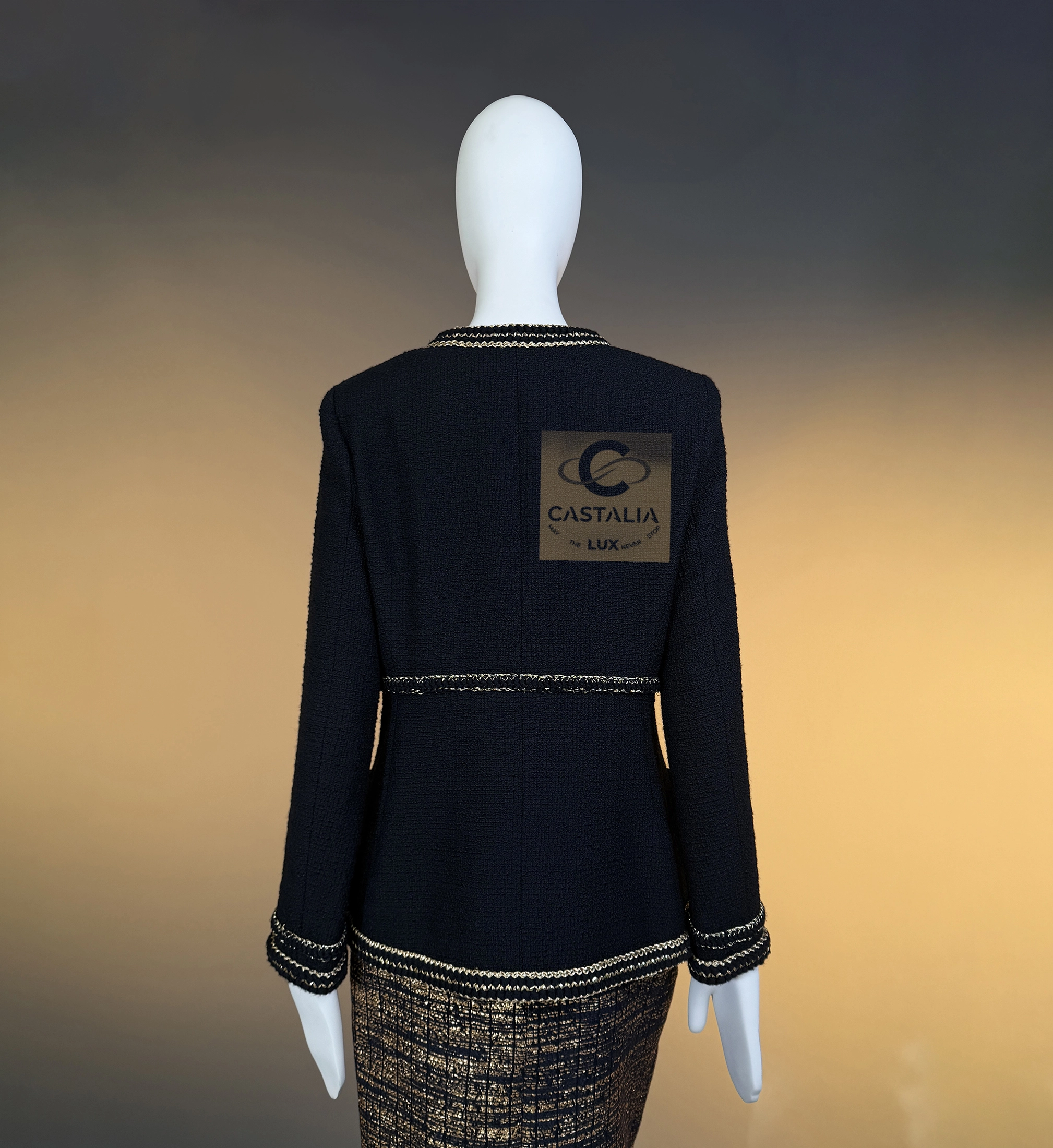 — Inside, the black silk lining and chain-linked hem — Chanel’s sacred signature — preserve the gravity and balance that define every masterpiece of the atelier