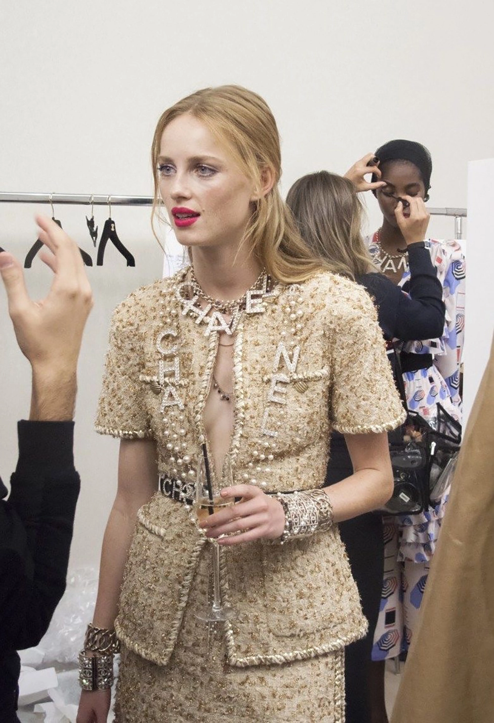 — framed by Chanel’s signature braided trim