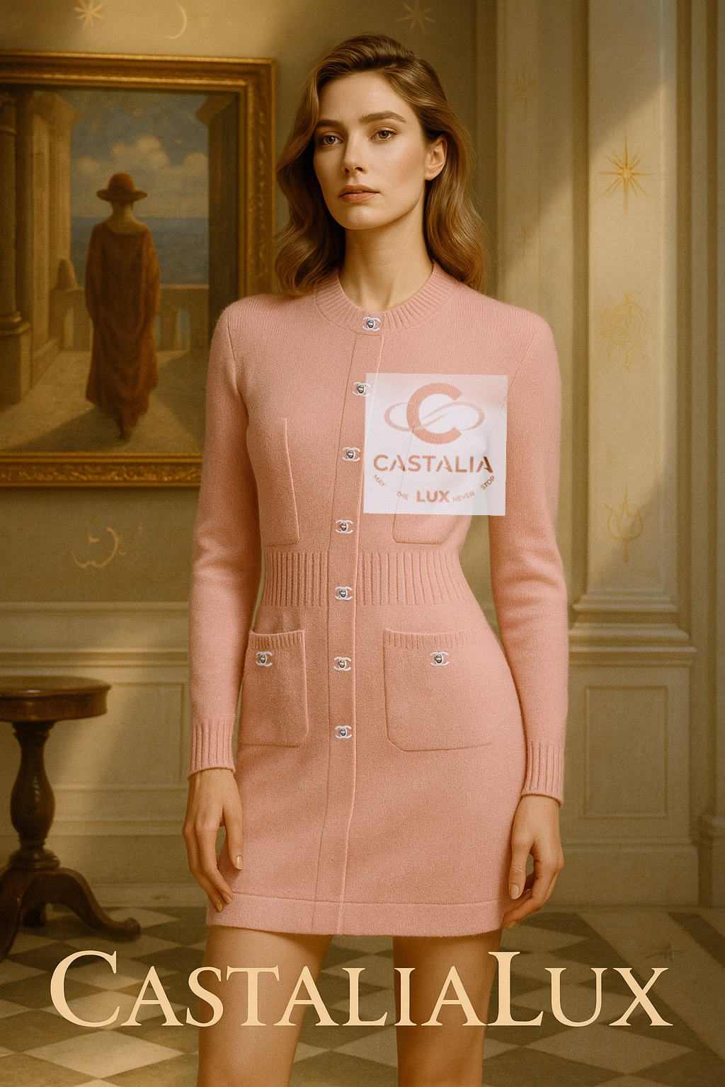 — Crafted in whisper-soft cashmere, its pale blush hue evokes the first light of dawn – a quiet radiance designed to soothe and empower