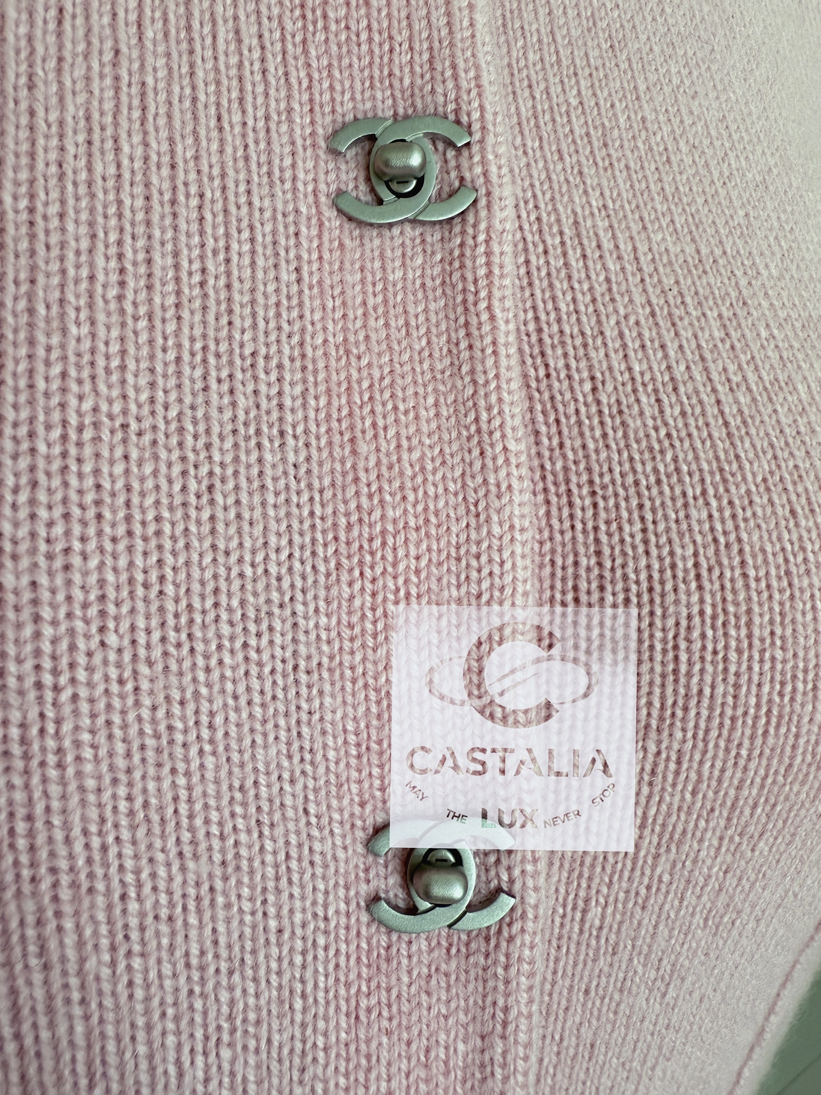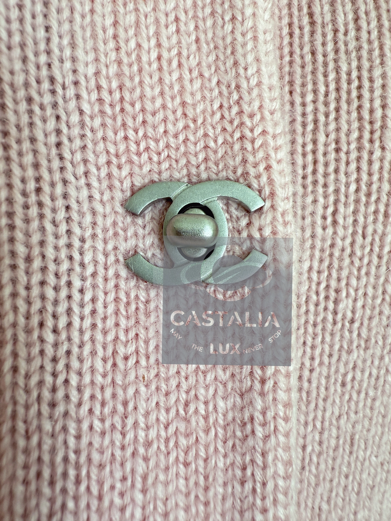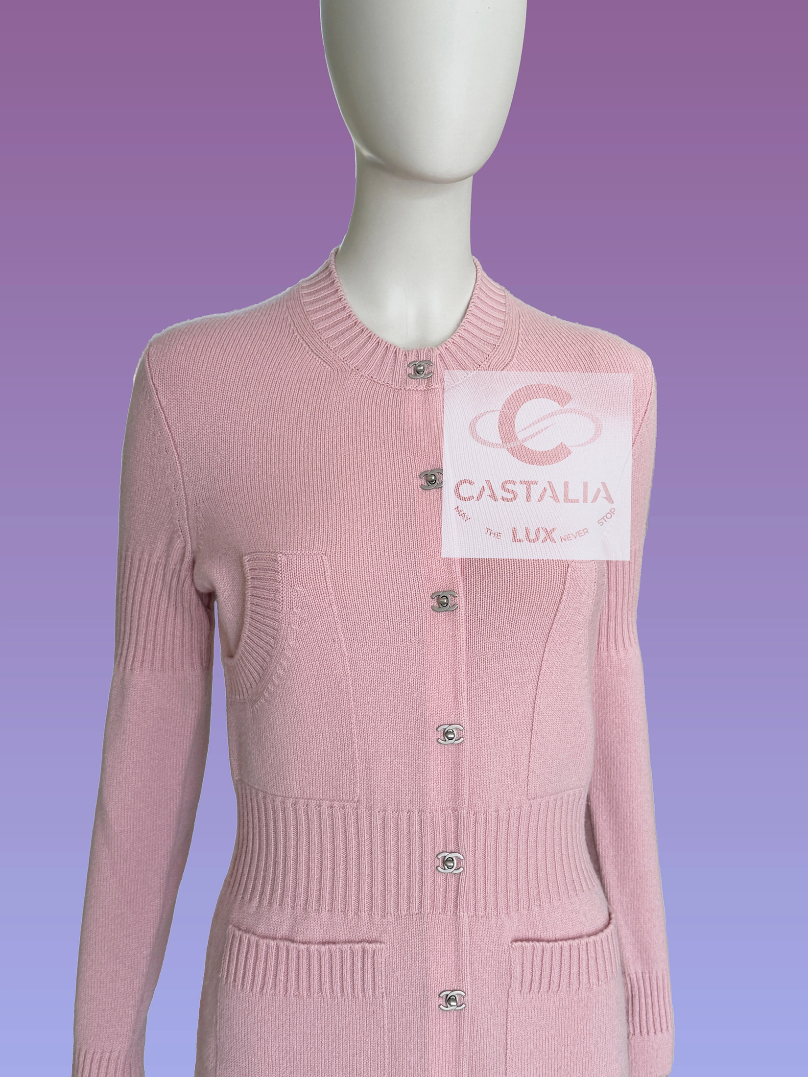 this Chanel pink cashmere cardigan embodies the House’s timeless codes with serene precision
