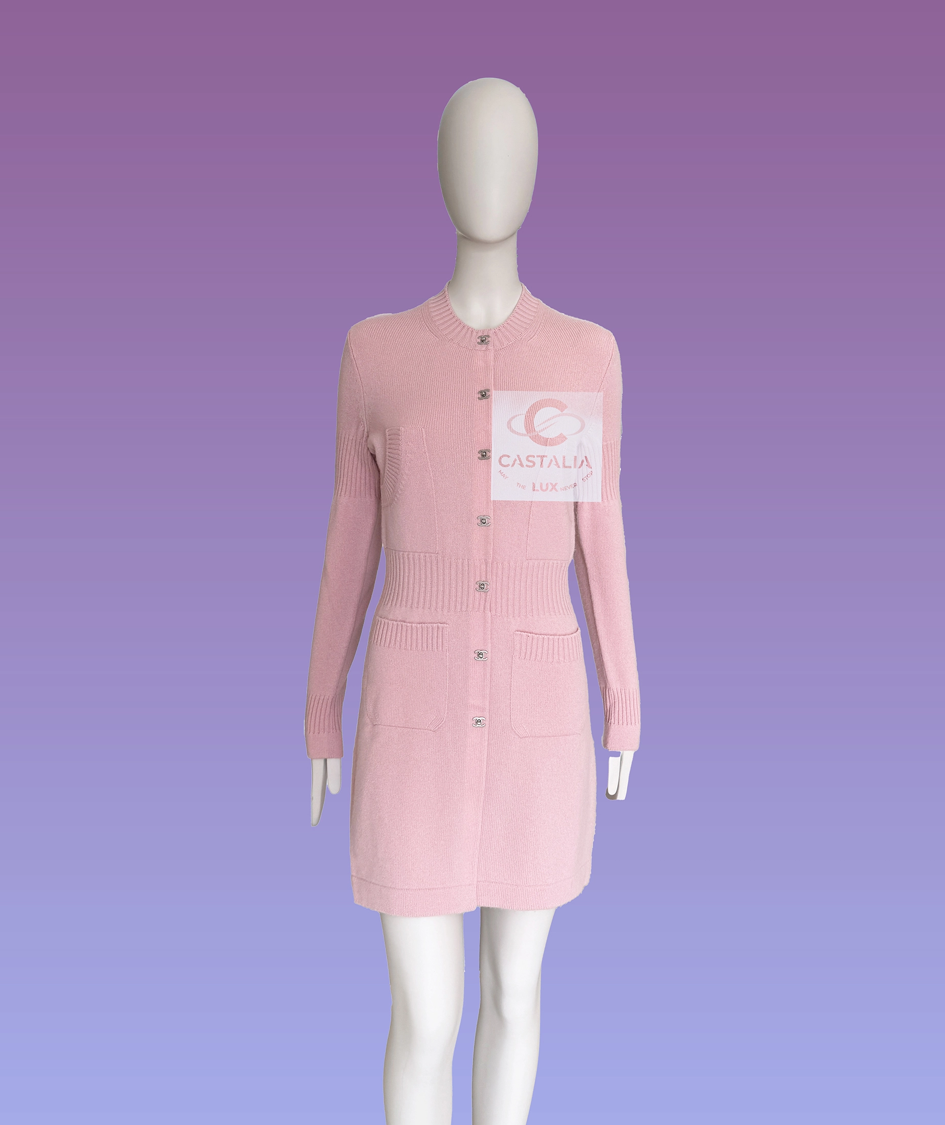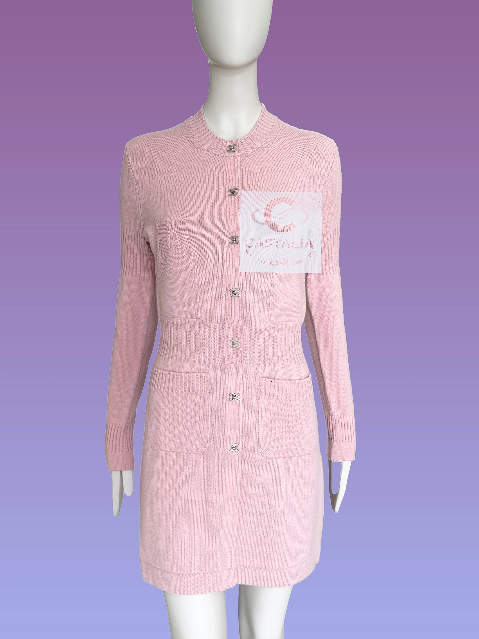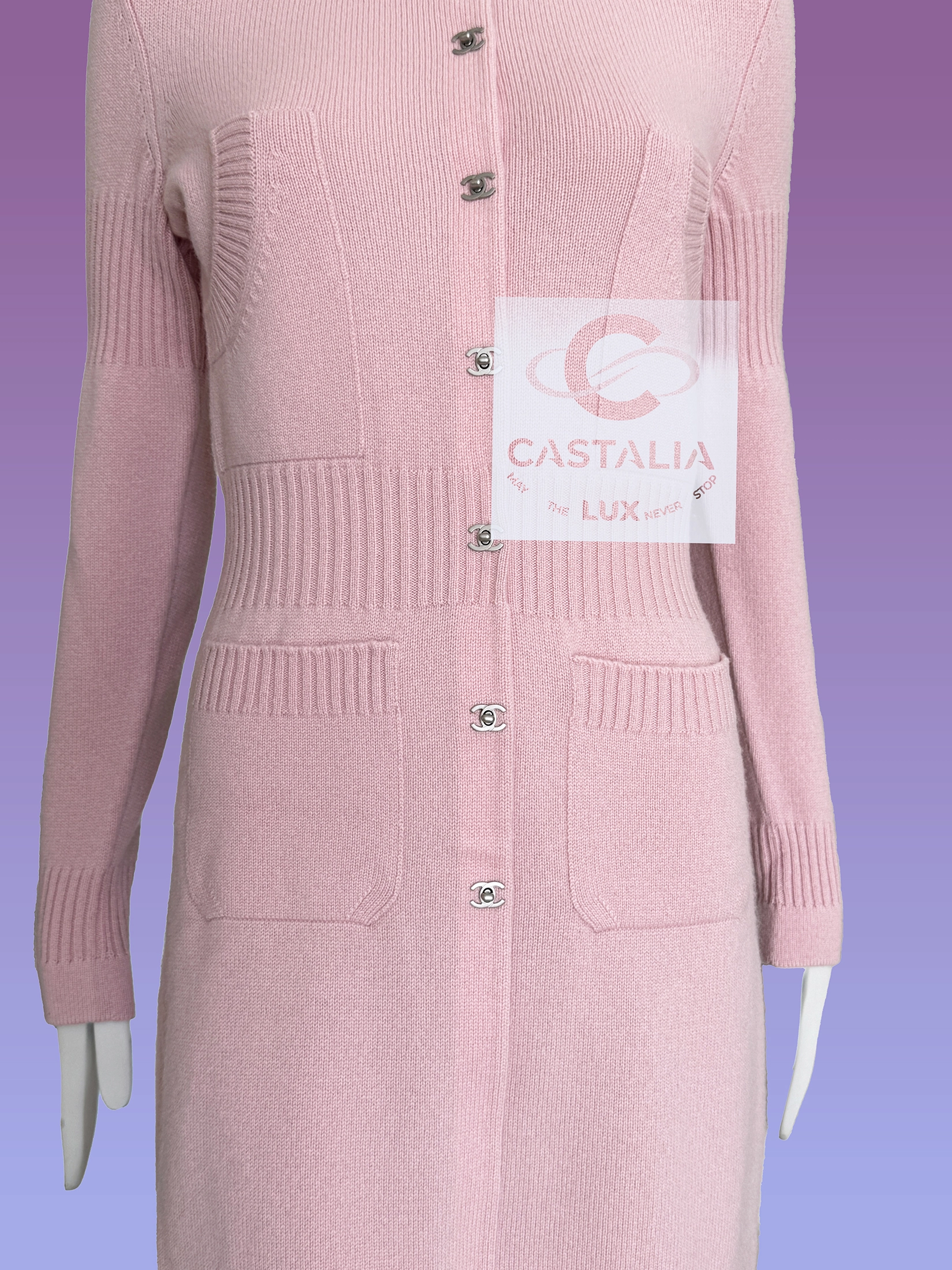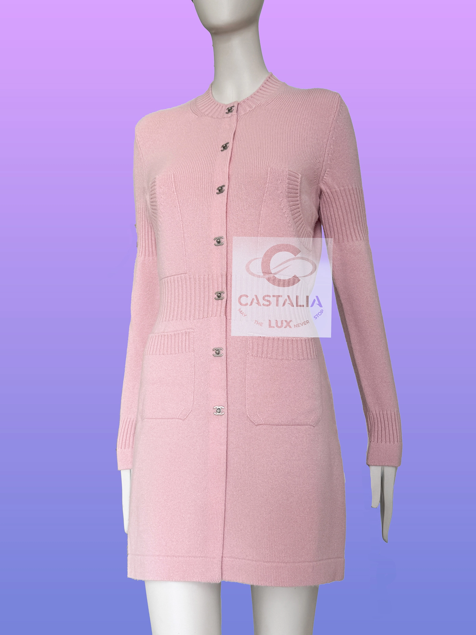 this Chanel pink cashmere cardigan embodies the House’s timeless codes with serene precision