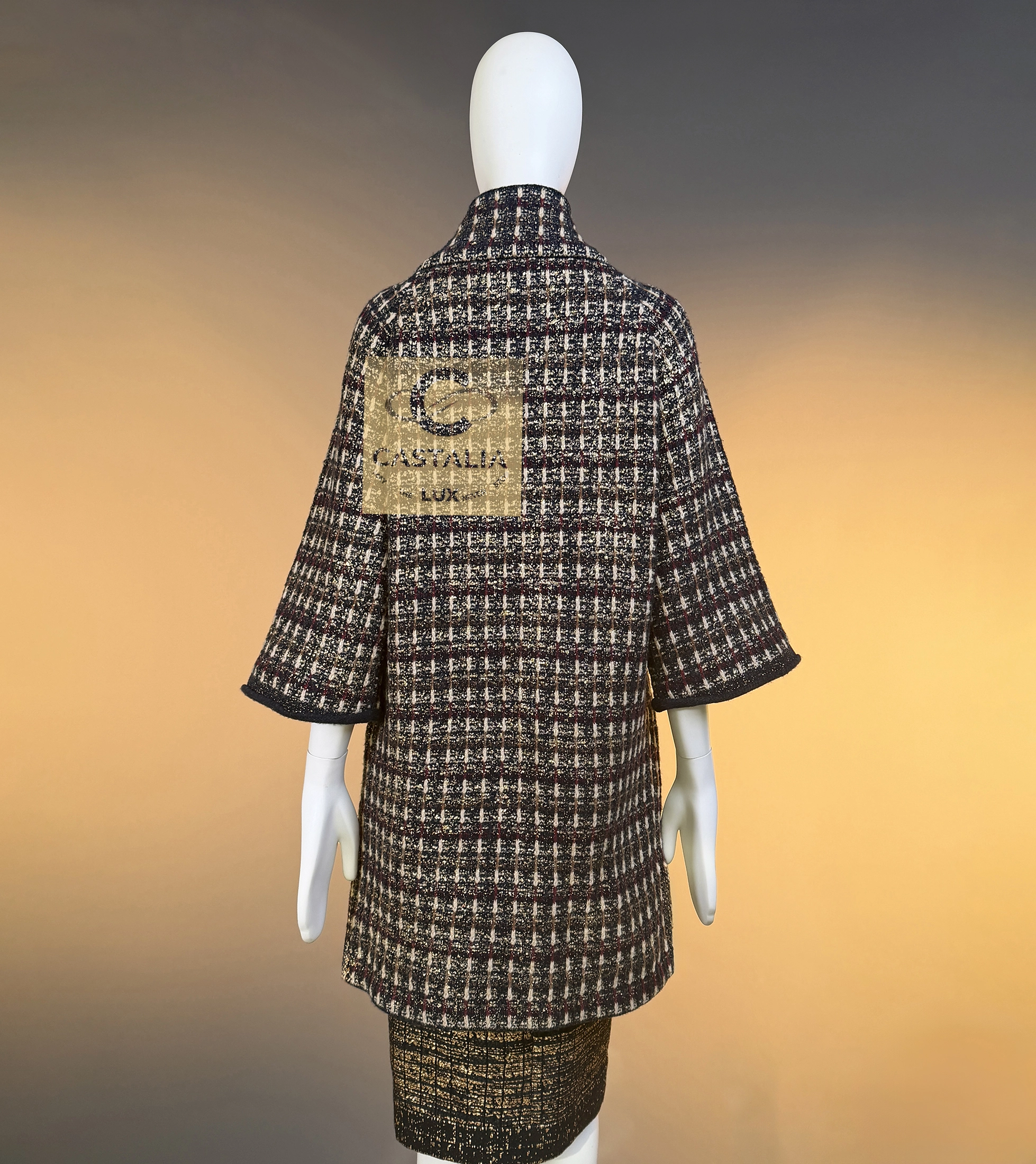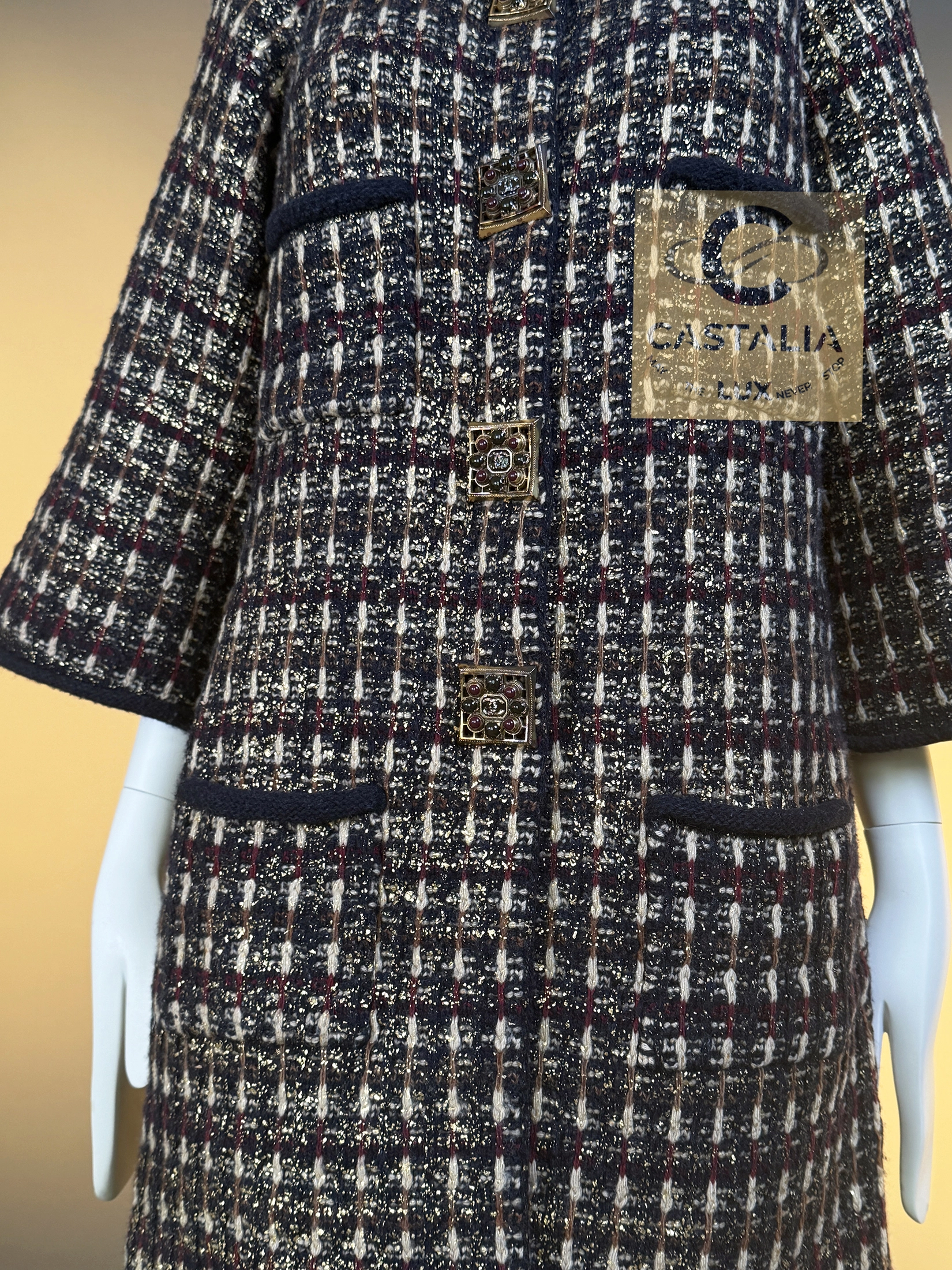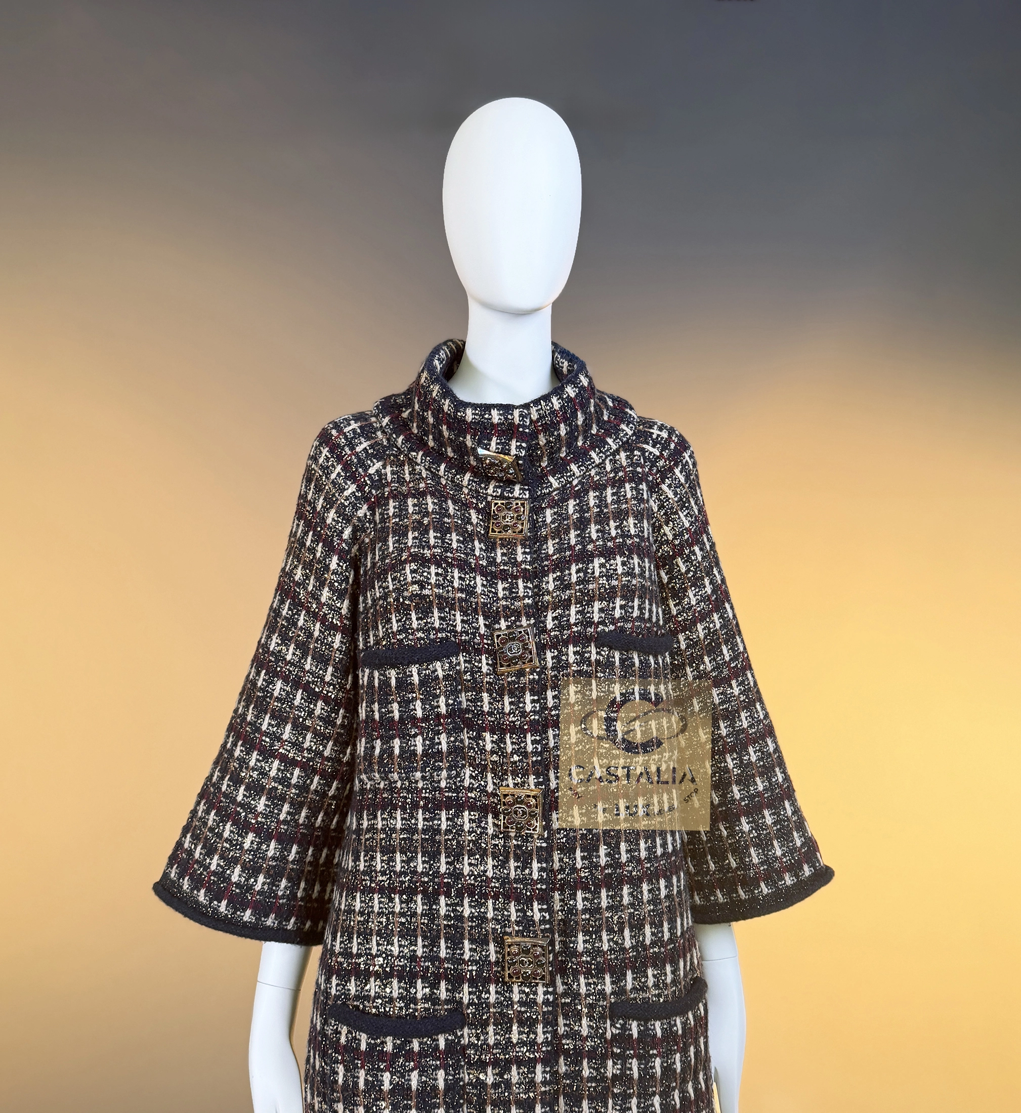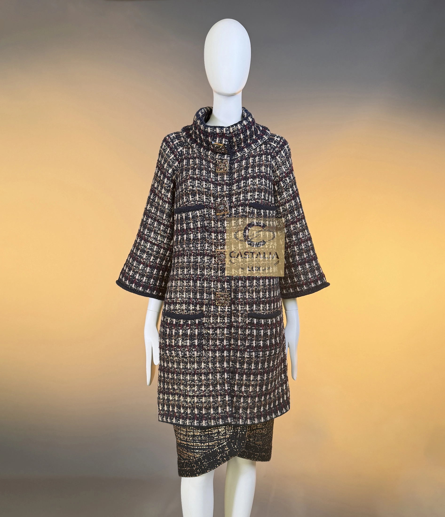 Chanel 16K$ Paris / Byzance Art Level Runway Coat — 2011 Metiers d’ArtCollection by Karl Lagerfeld ~ With initial boutique value over 16,000, today’s boutique value for this level pieces exceeds 20,000$ ~ An exquisite artifact for the true Chanel connoisseur, this coat stands as a rare testament to the maison’s ability to merge fashion with the language of empire ~ This is more than a coat; it is a portal — a garment in which past and present meet in an unbroken line, draping the wearer in the enduring majesty of Chanel’s own Byzantium. // Size mark 36 FR / Condition: never worn // — structure is defined by an iconic four–patch–pocket silhouette and a noble stand collar, cut in sumptuous tweed that carries the weight of history with modern precision — masterpiece jewel Gripoix buttons bearing the CC logo, each one a miniature reliquary — a fragment of light captured in glass and gold — subtle shimmer coating catches movement like Byzantine mosaics catching candlelight, a quiet homage to the lost grandeur of the lost Eastern empire