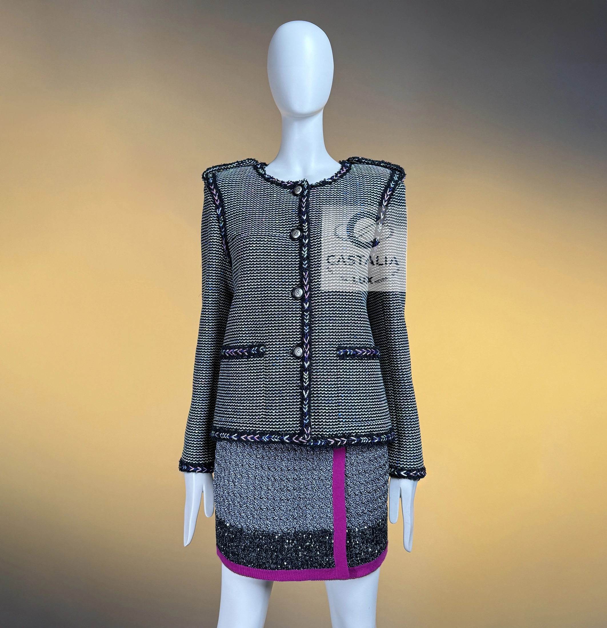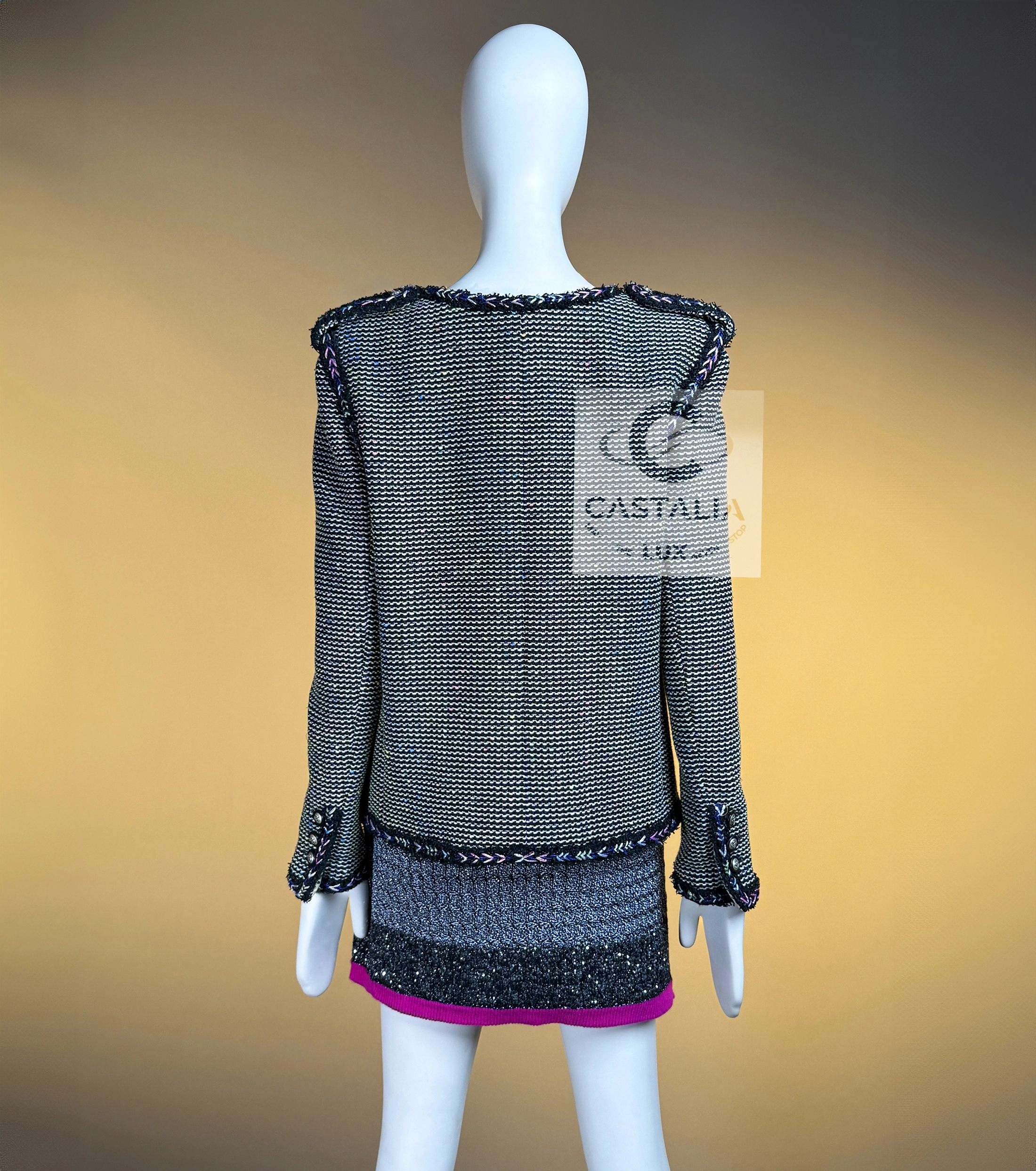CHANEL Iridescent Black Lesage Tweed Jacket 42 FR