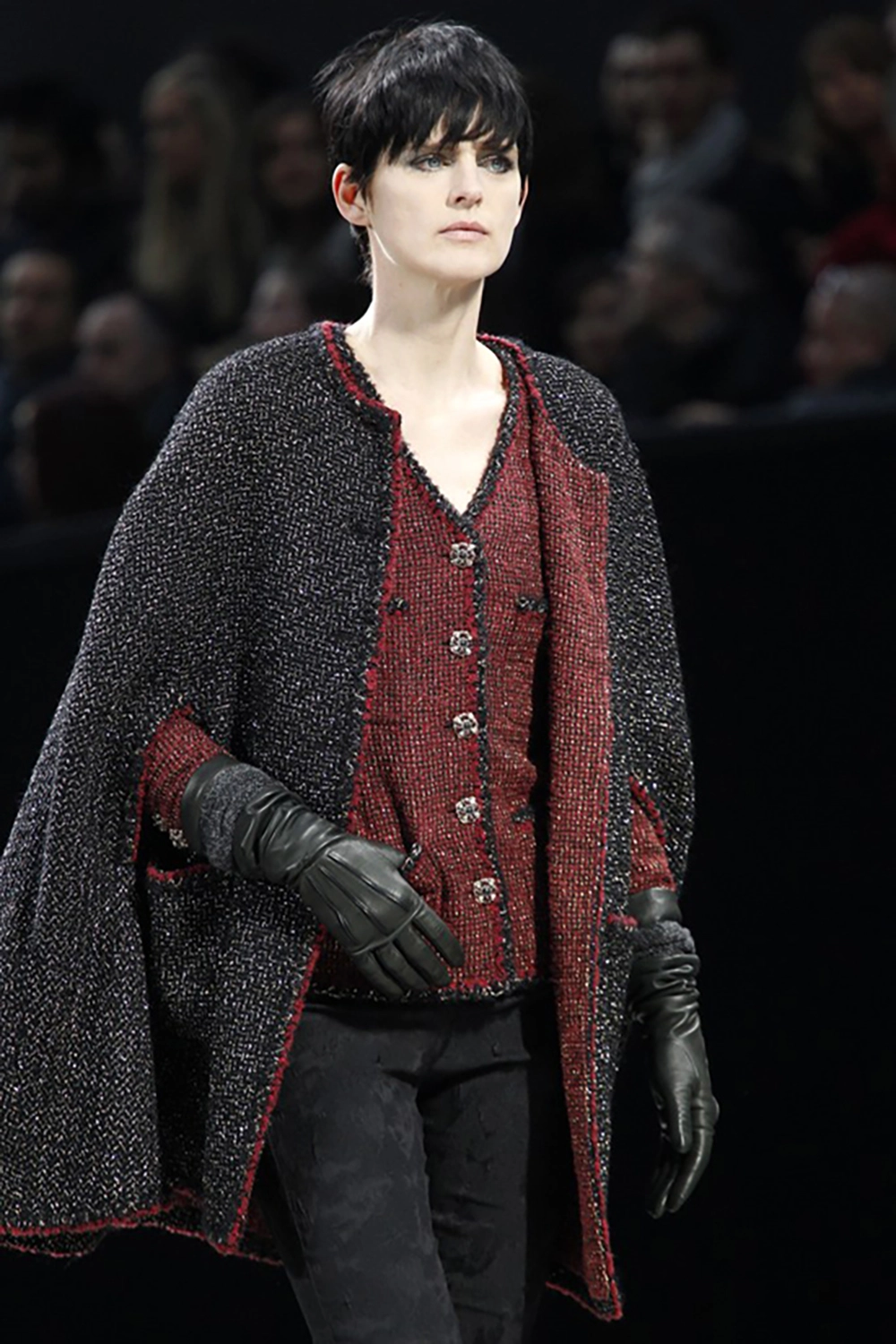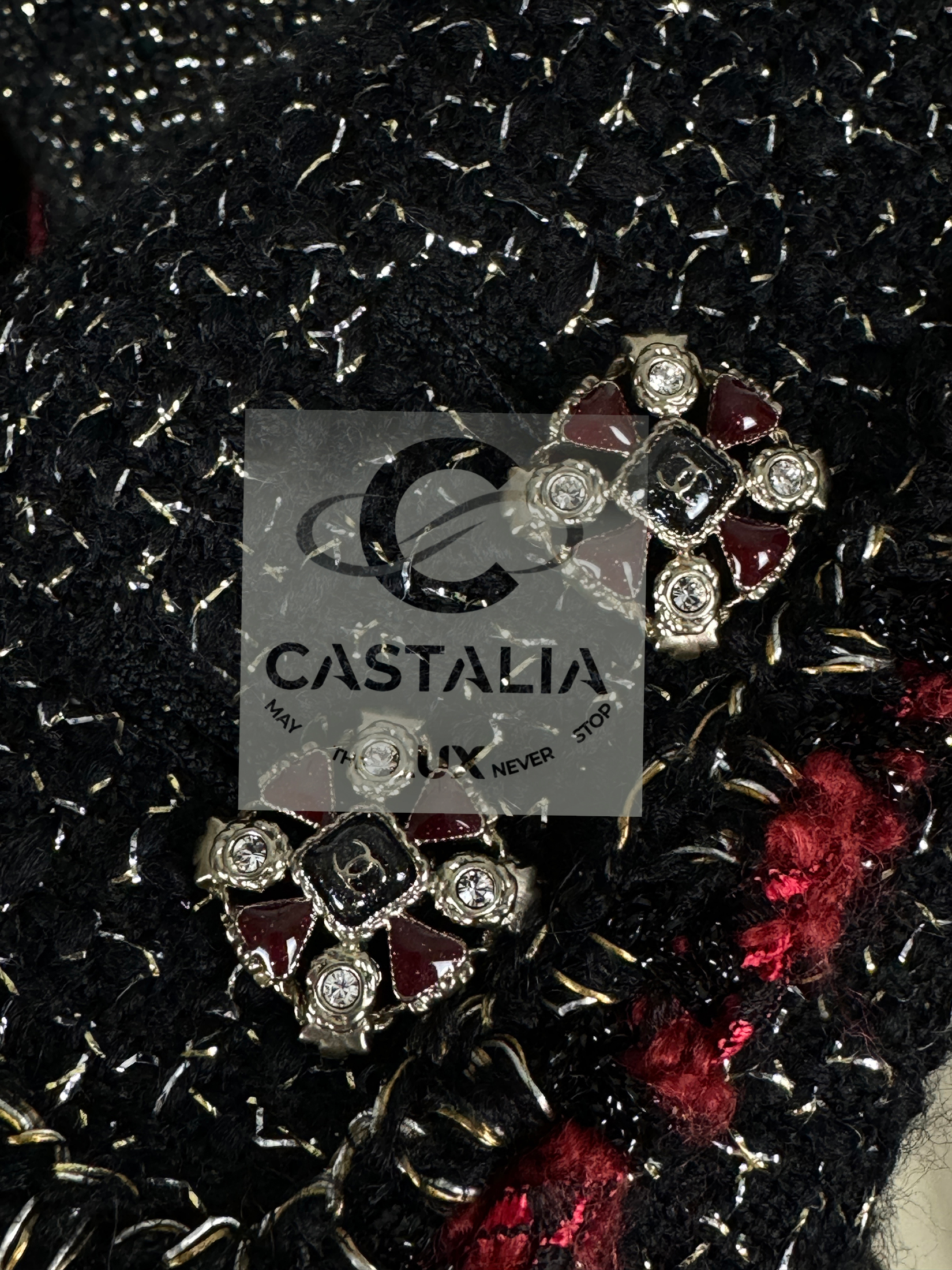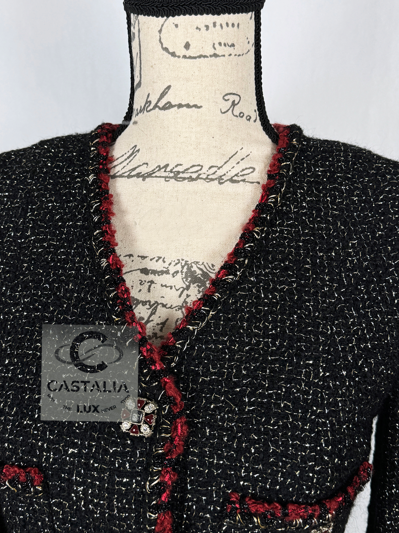 — Tailored from exquisite black Lesage tweed, interwoven with shimmering metallic threads that refract light like constellations caught in fabric