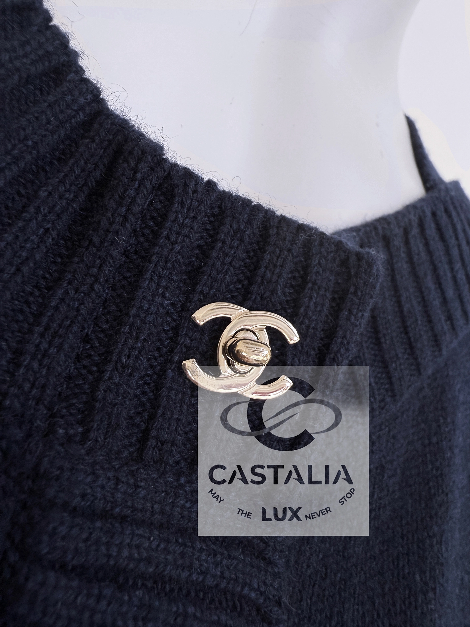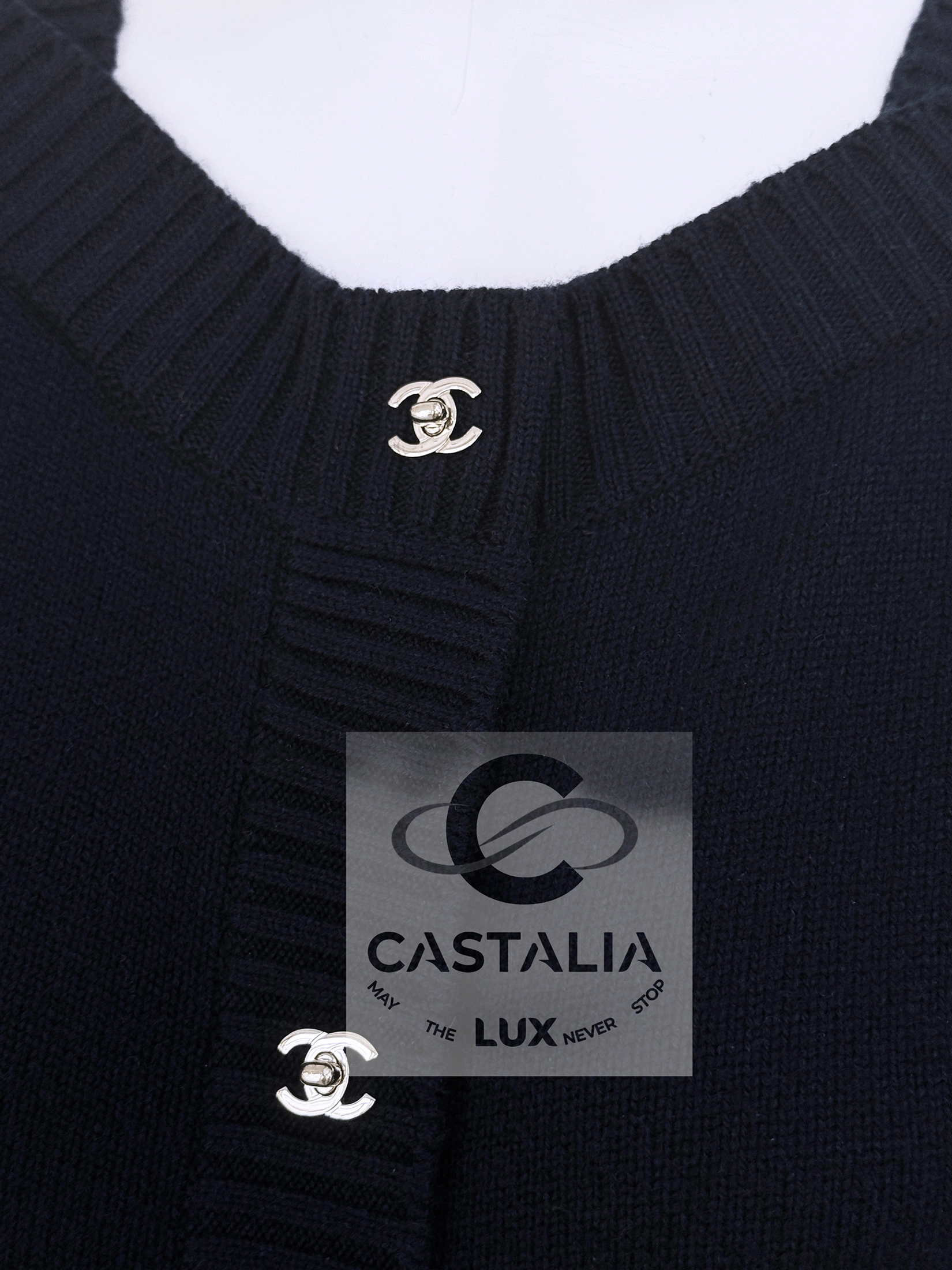 CHANEL · Eternal Navy Cashmere Cardigan with Iconic CC Turnlock Closures