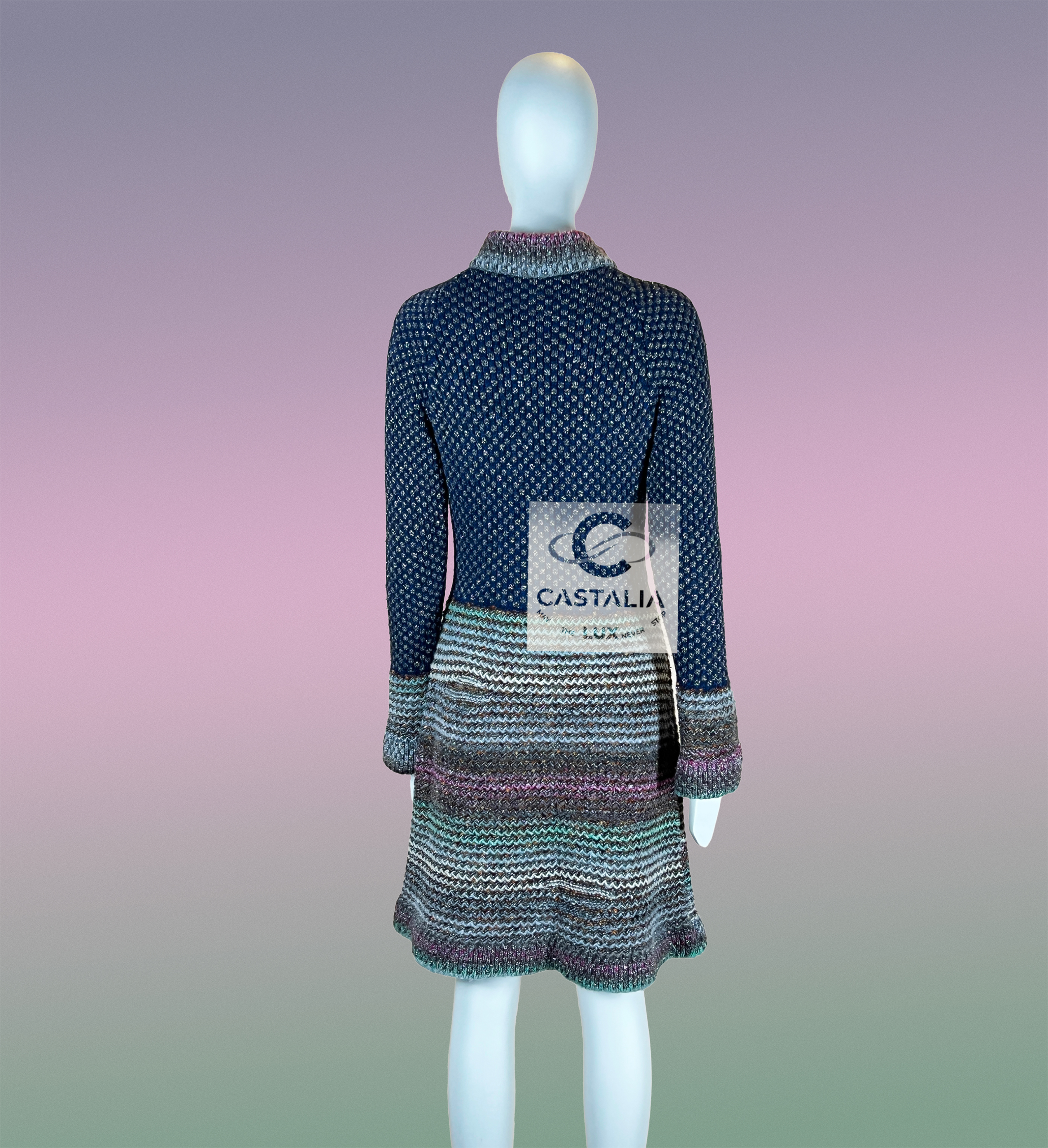 this Chanel shimmer knit dress hails from the legendary Paris–Byzance Métiers d’Art collection — a Runway