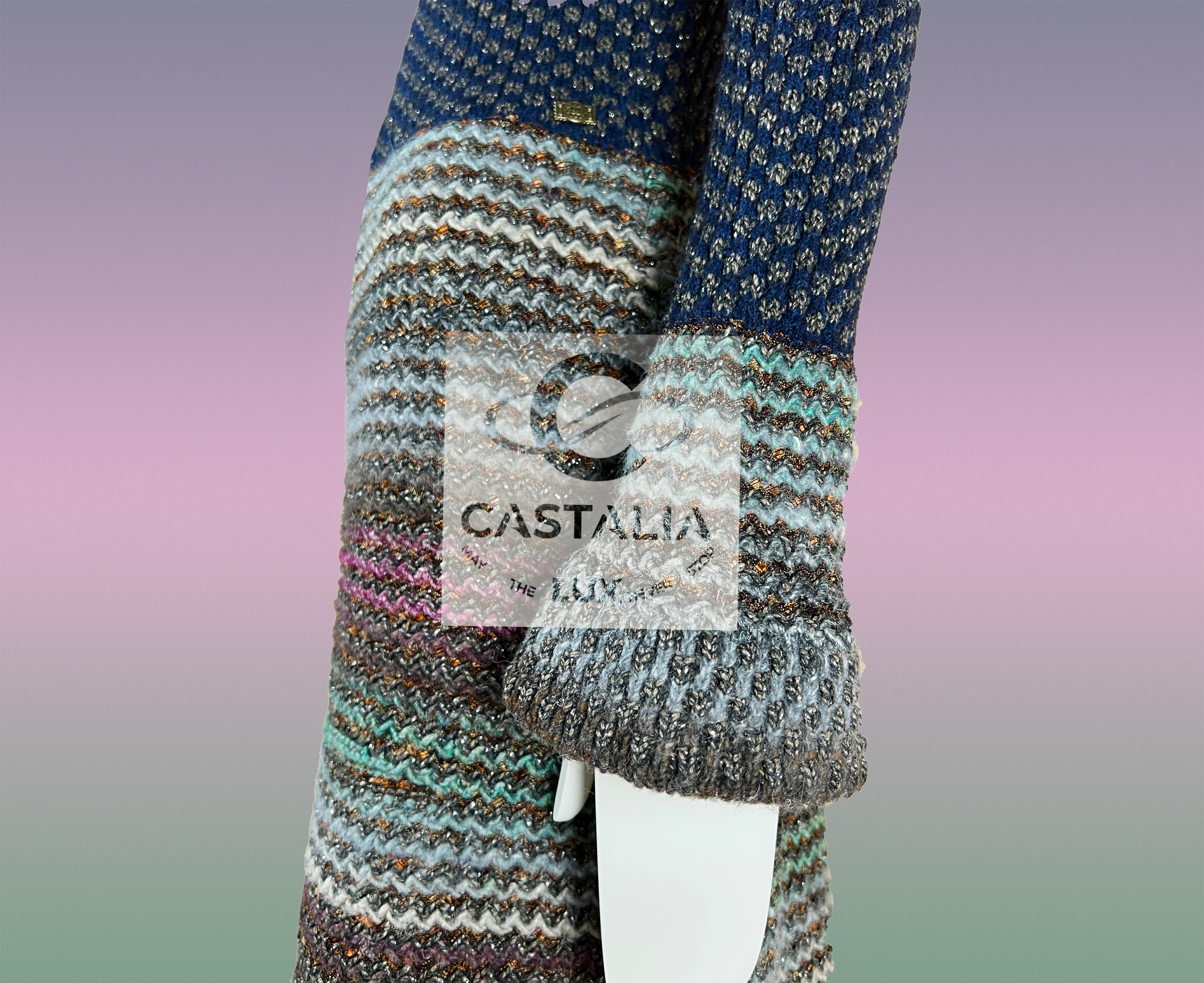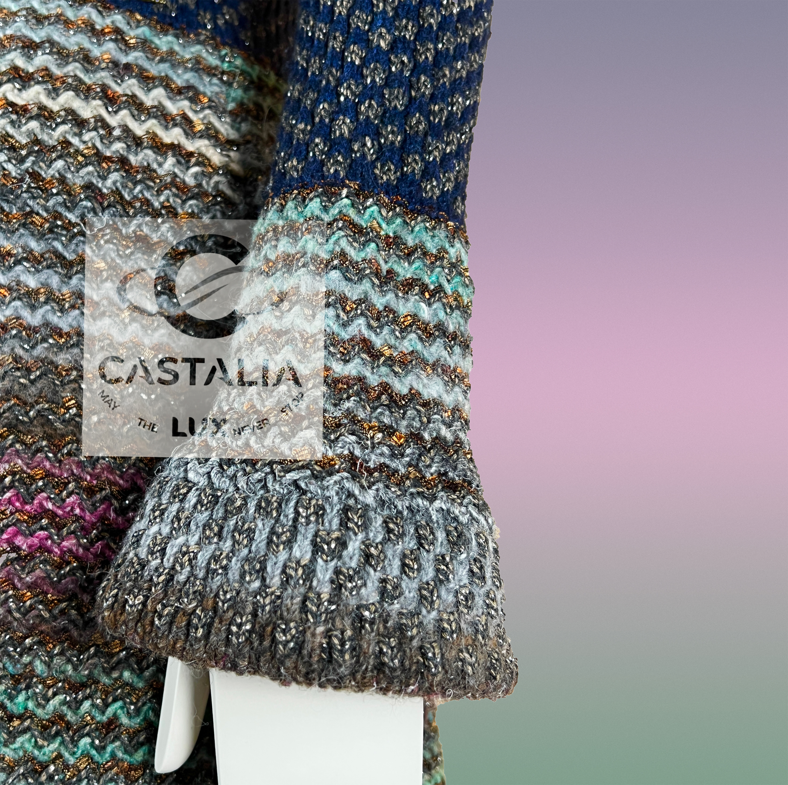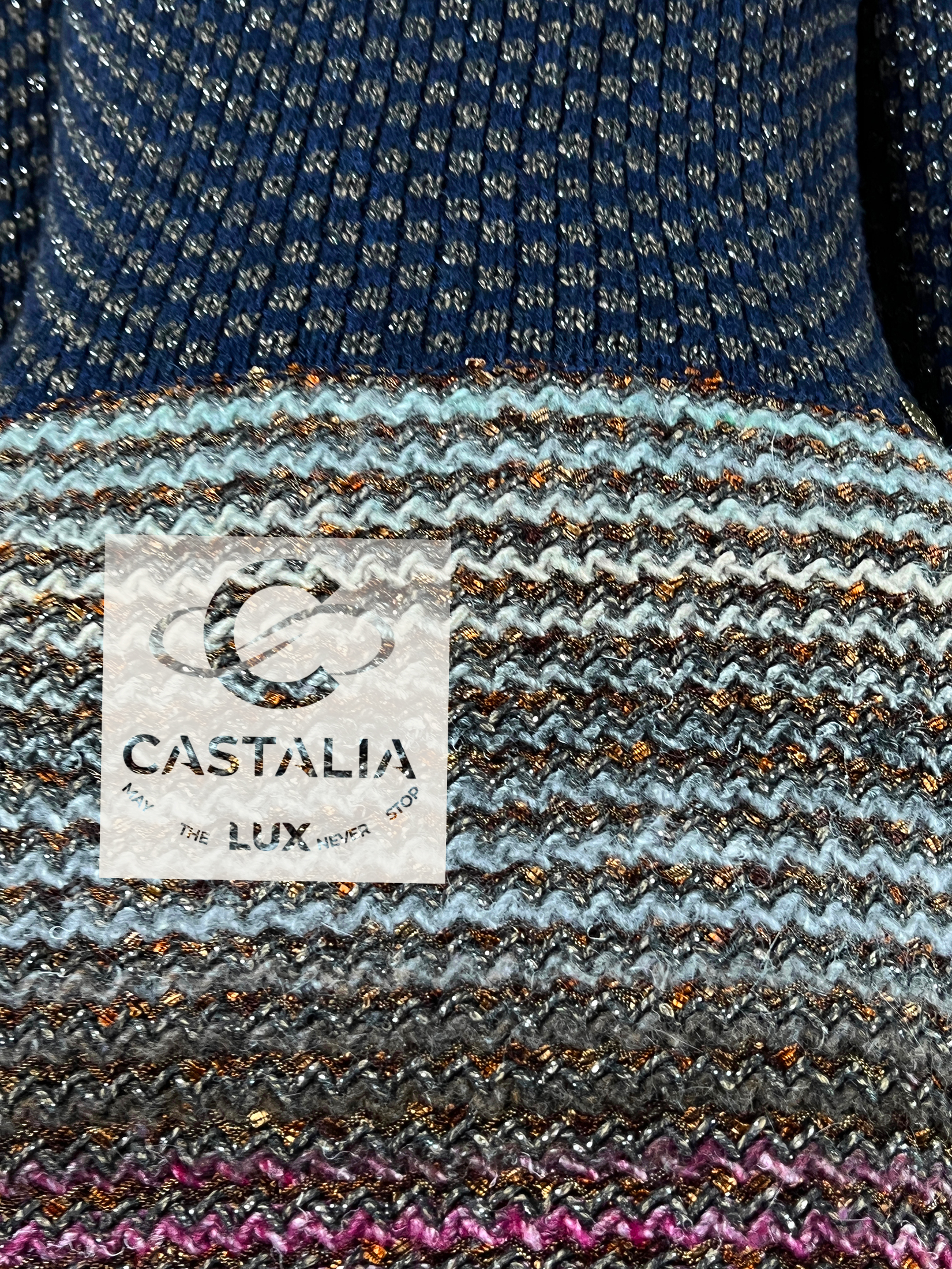 — each fiber infused with subtle Lurex shimmer, like whispered echoes of ancient mosaics
