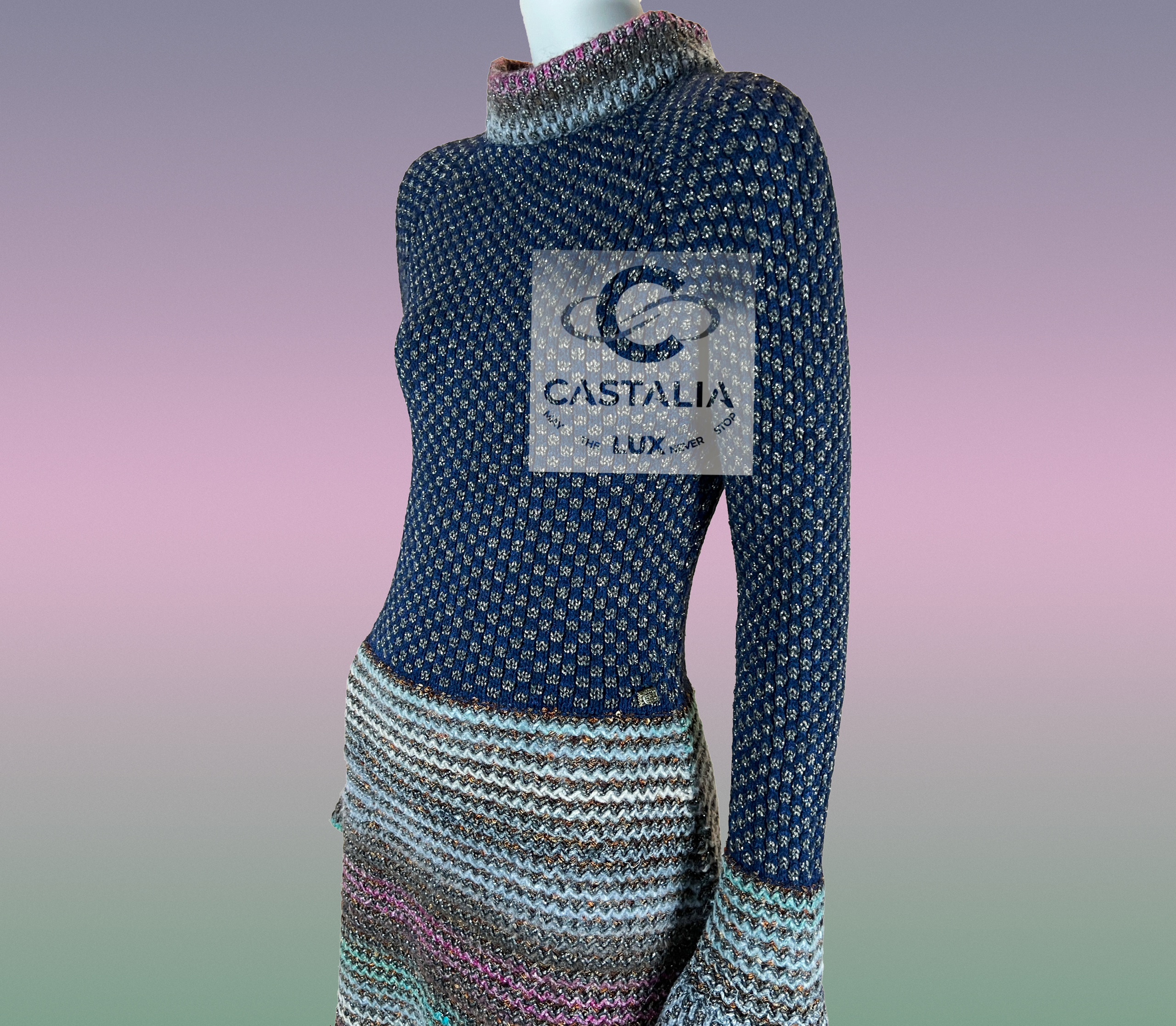 ~ A relic woven from the splendor of Byzantium and the precision of Parisian haute couture, this Chanel shimmer knit dress hails from the legendary Paris–Byzance Métiers d’Art collection — a Runway ode to imperial decadence