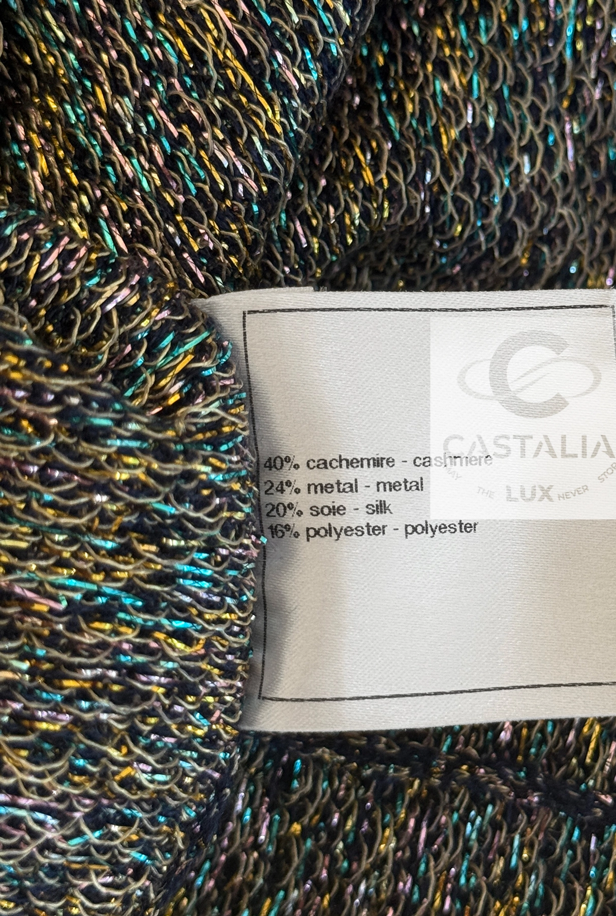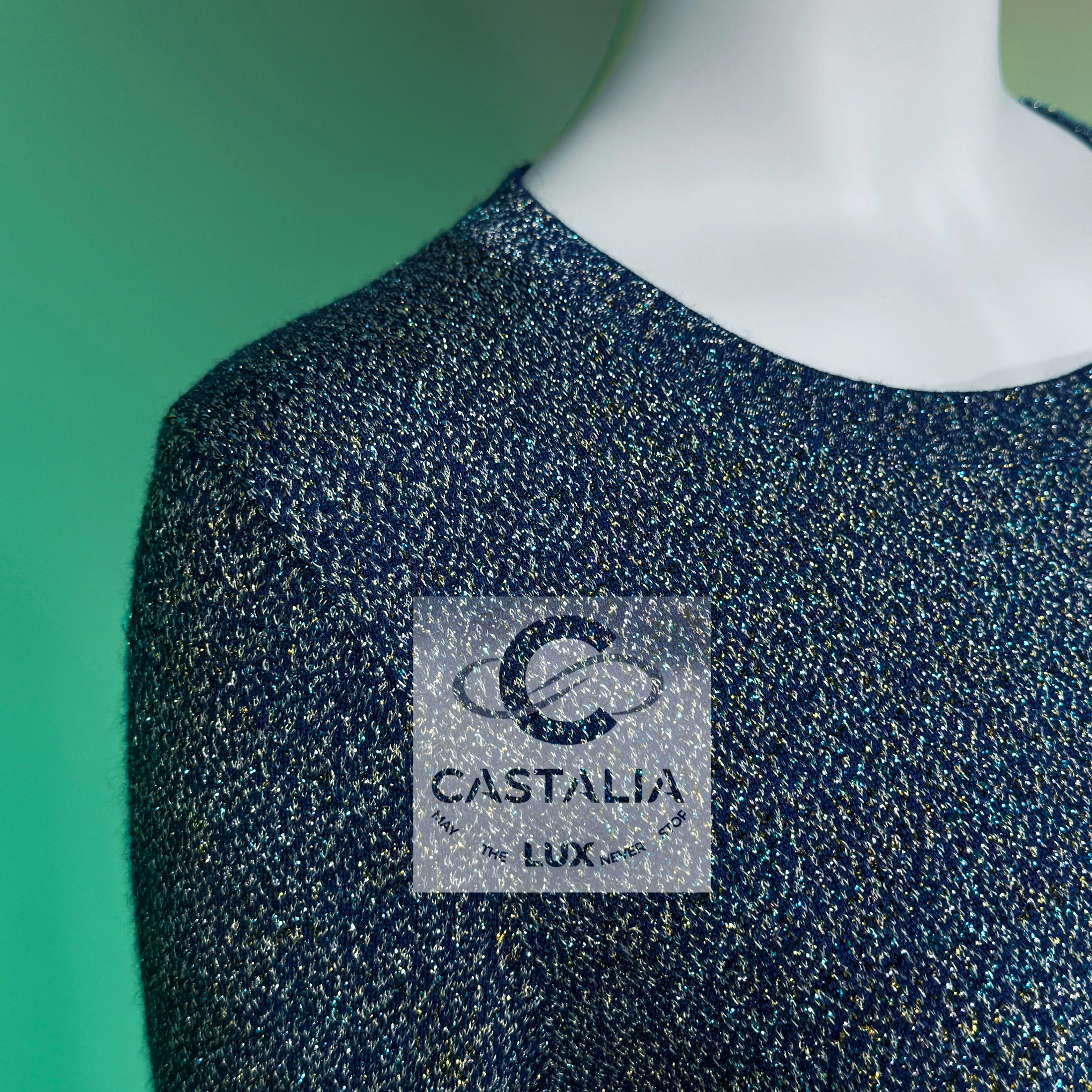 — Spun from art-like iridescent cashmere threaded with metallic light, the surface shifts between sapphire, cobalt, and moonlit silver — a living tapestry in motion