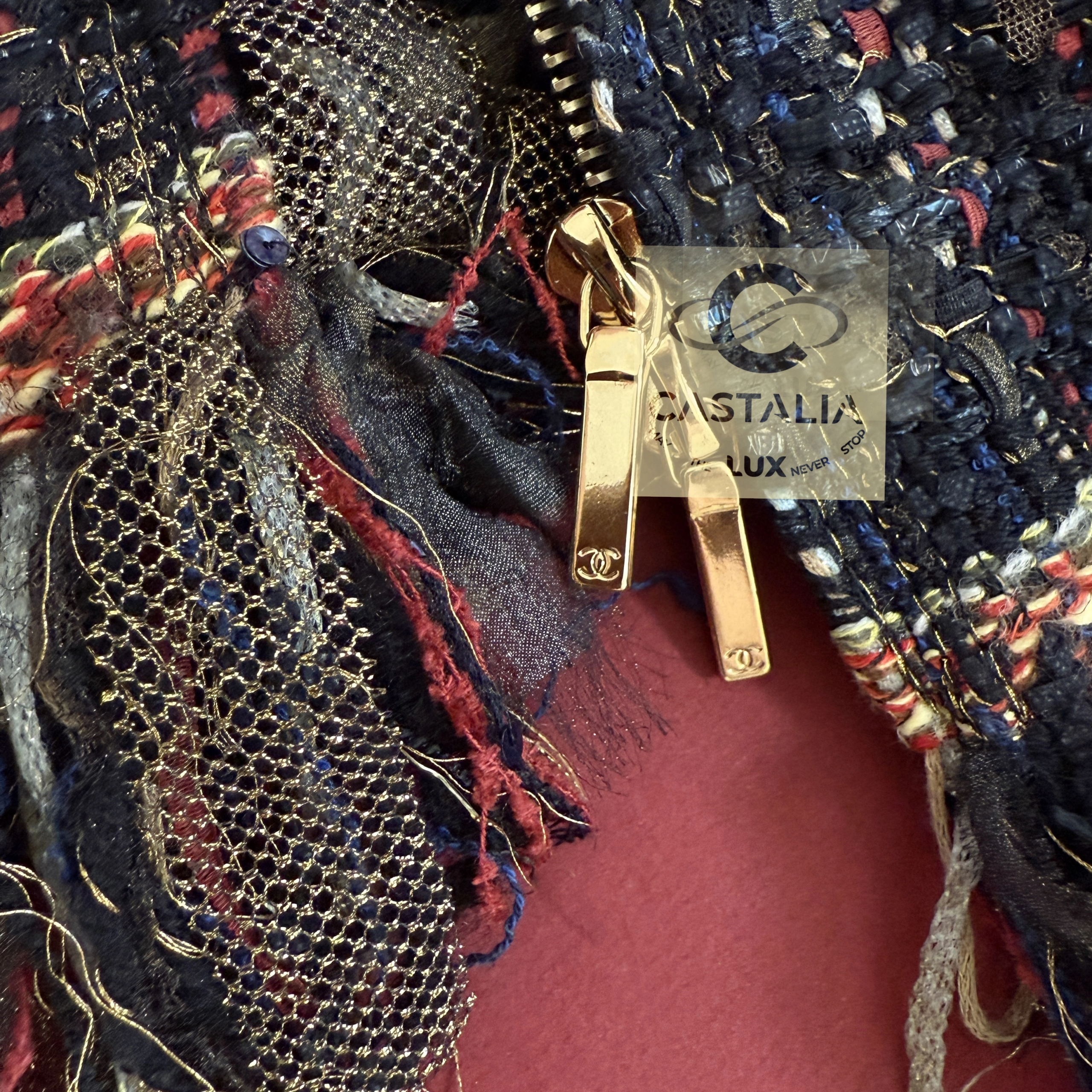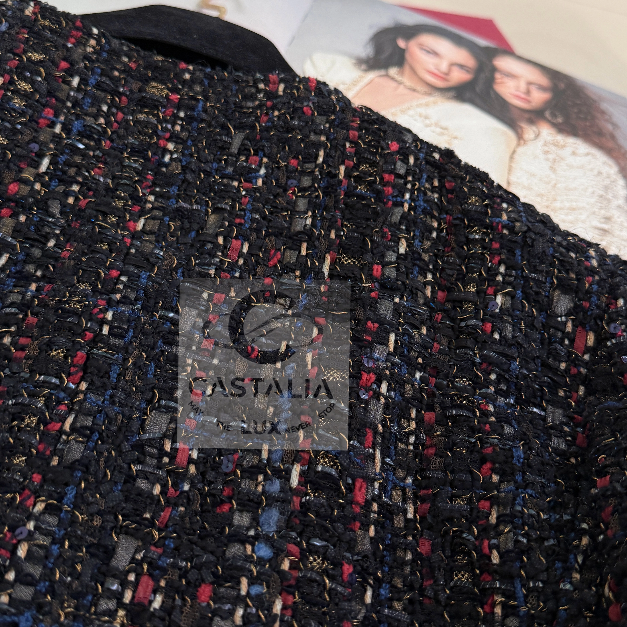 — Woven from the most precious Lesage tweed, its palette evokes a painterly composition of rich nocturnes and chromatic bursts,