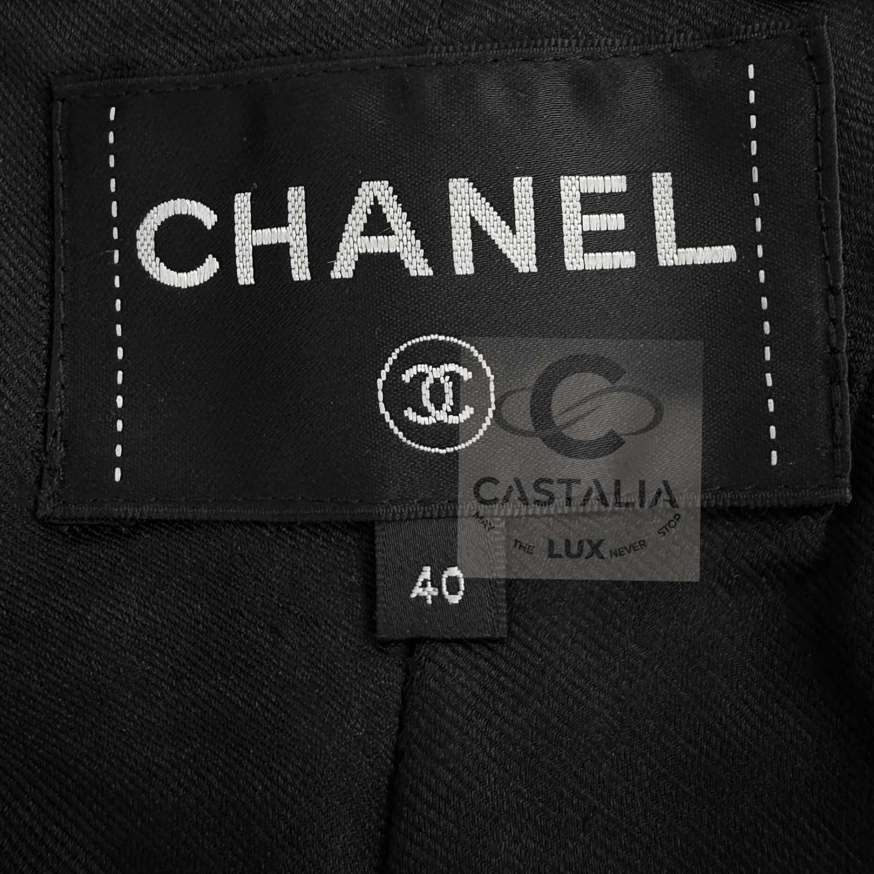 — The front closes with a CC logo zipper, discreet yet resolute, while at the waist gleams a jewel CC charm crowned with a lion’s head, Chanel’s eternal emblem of force and sovereignty