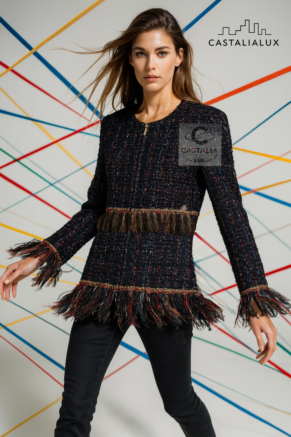 — Along the waist and hem, fringe accents unravel like poetic brushstrokes, simultaneously disciplined and wild — a celebration