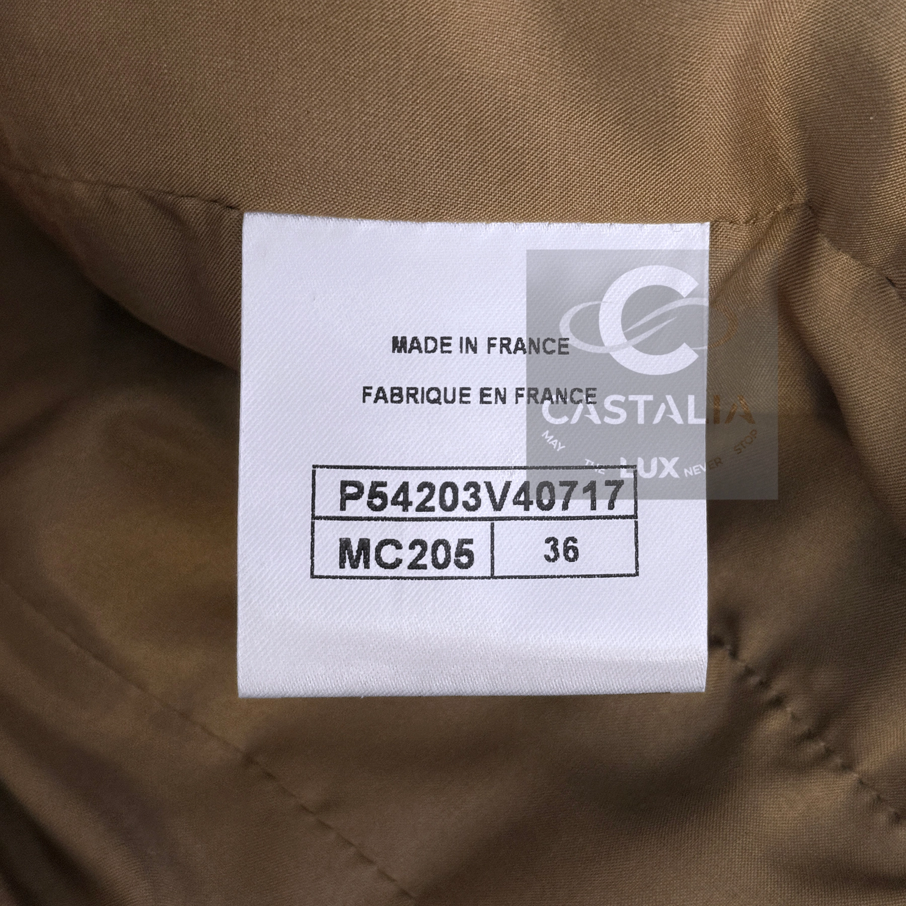— Inside, tonal silk lining and the traditional chain at the hem complete its hidden architecture of luxury