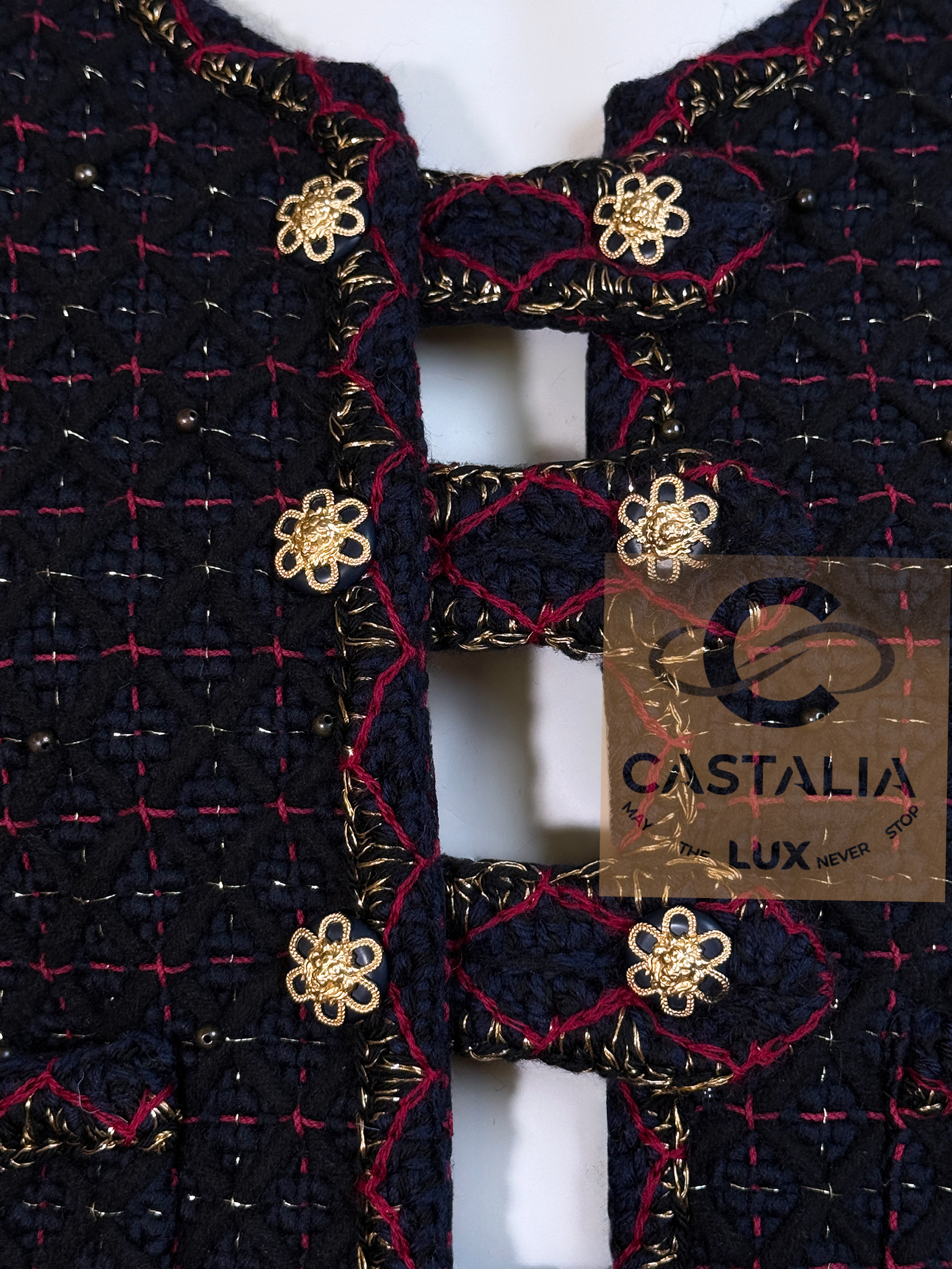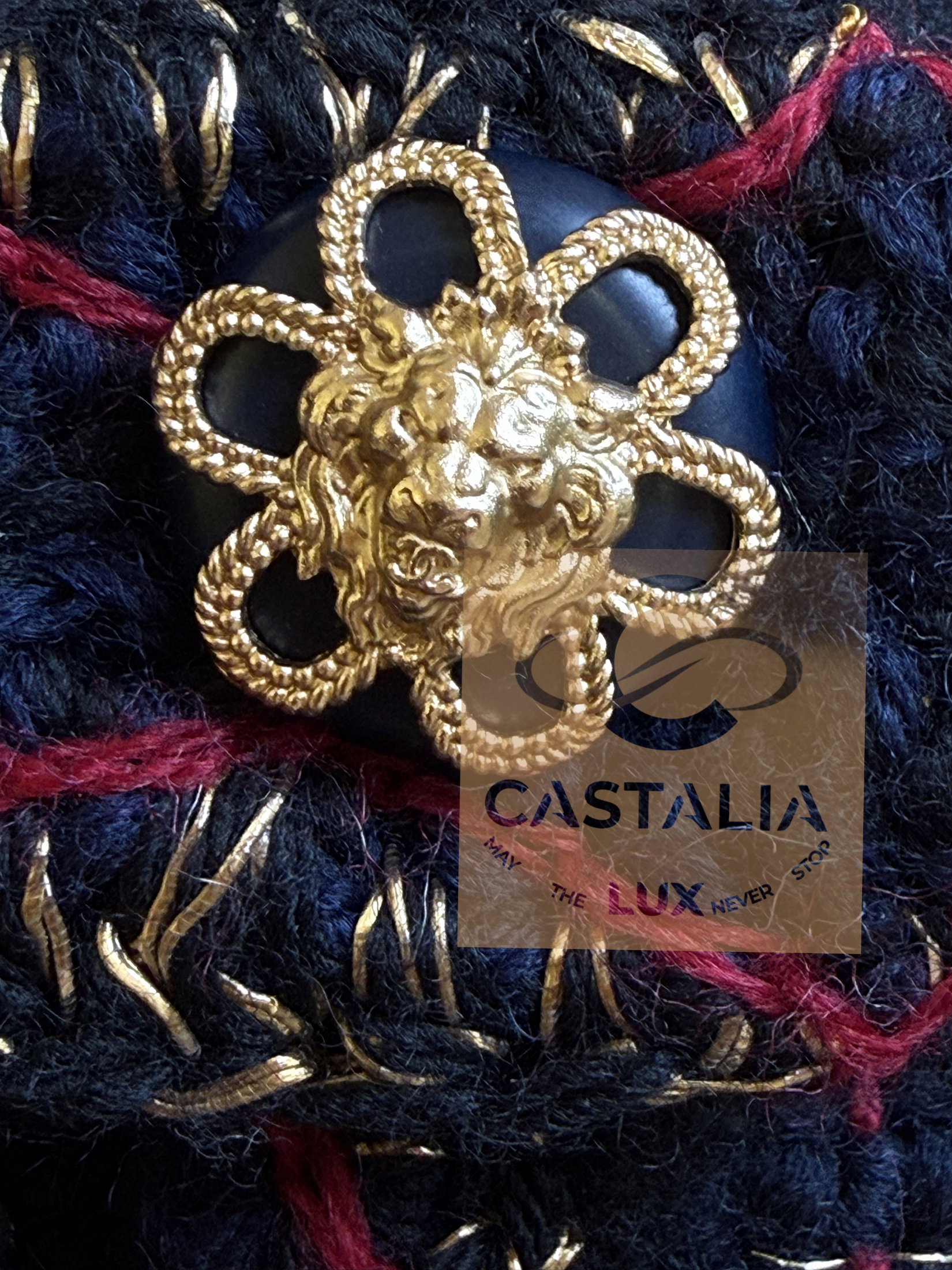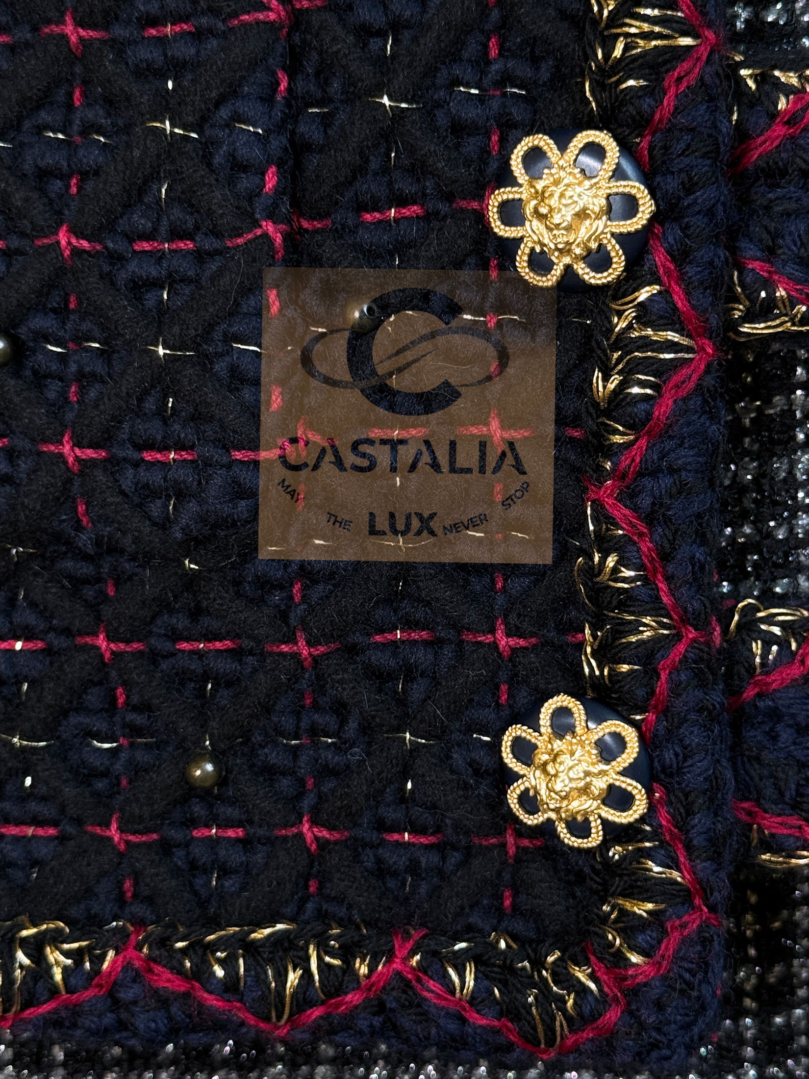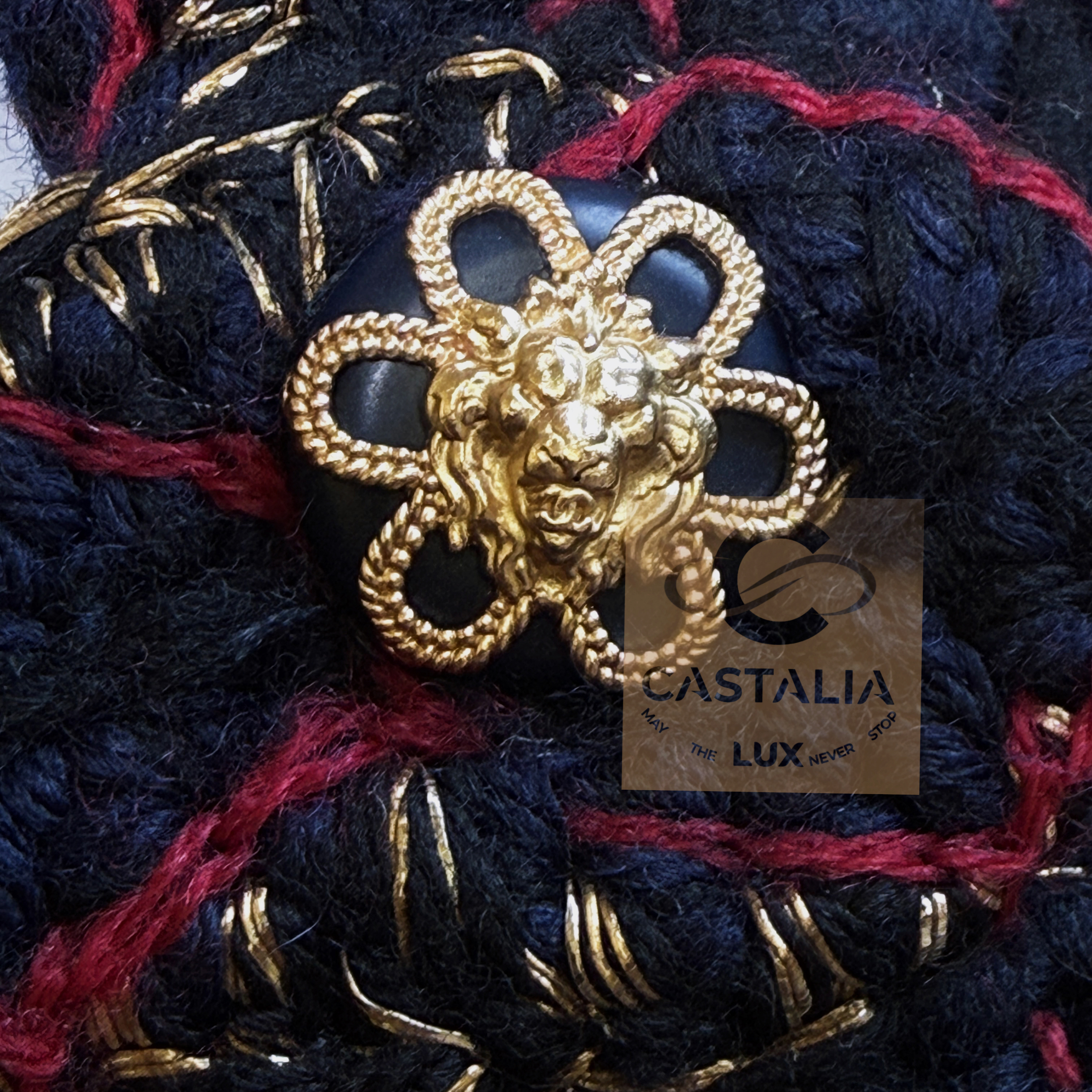 • Masterpiece jewel buttons unite CC logos with lion heads — Salzburg’s heraldic power distilled into miniature icons — Each closure is a talisman: a wearable insignia that binds the jacket to its Métiers chapter and its campaign mythology