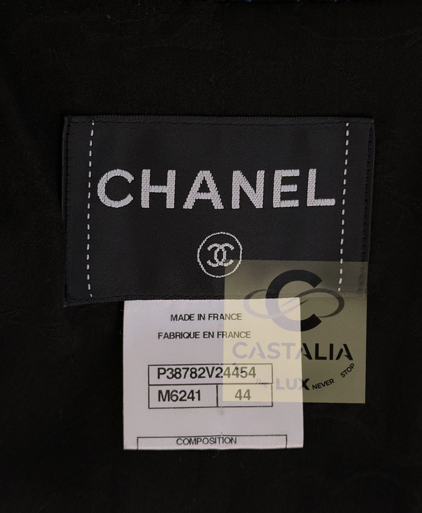 — Black silk lining and chain link hem anchoring the jacket with the Maison’s eternal weight and ritual