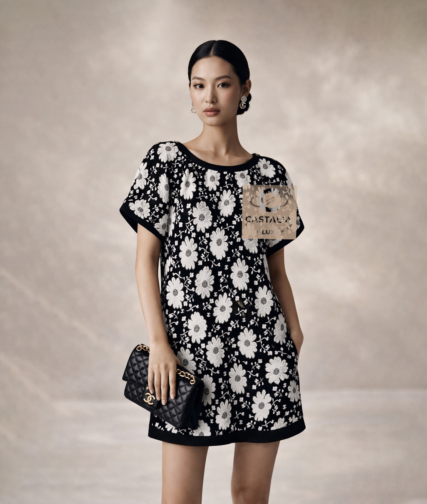 ~ A floral constellation of Chanel’s sacred emblems — where Camellias bloom in monochrome light and the CC becomes part of nature’s geometry.