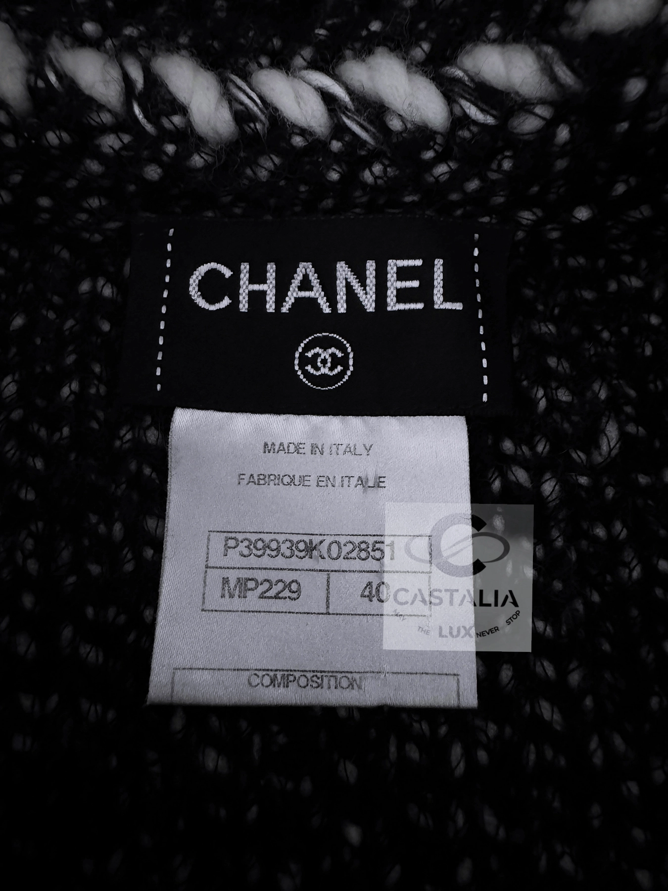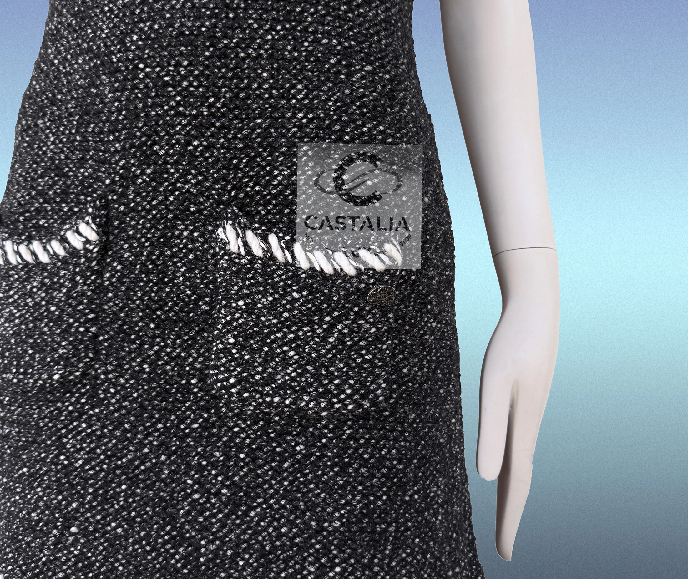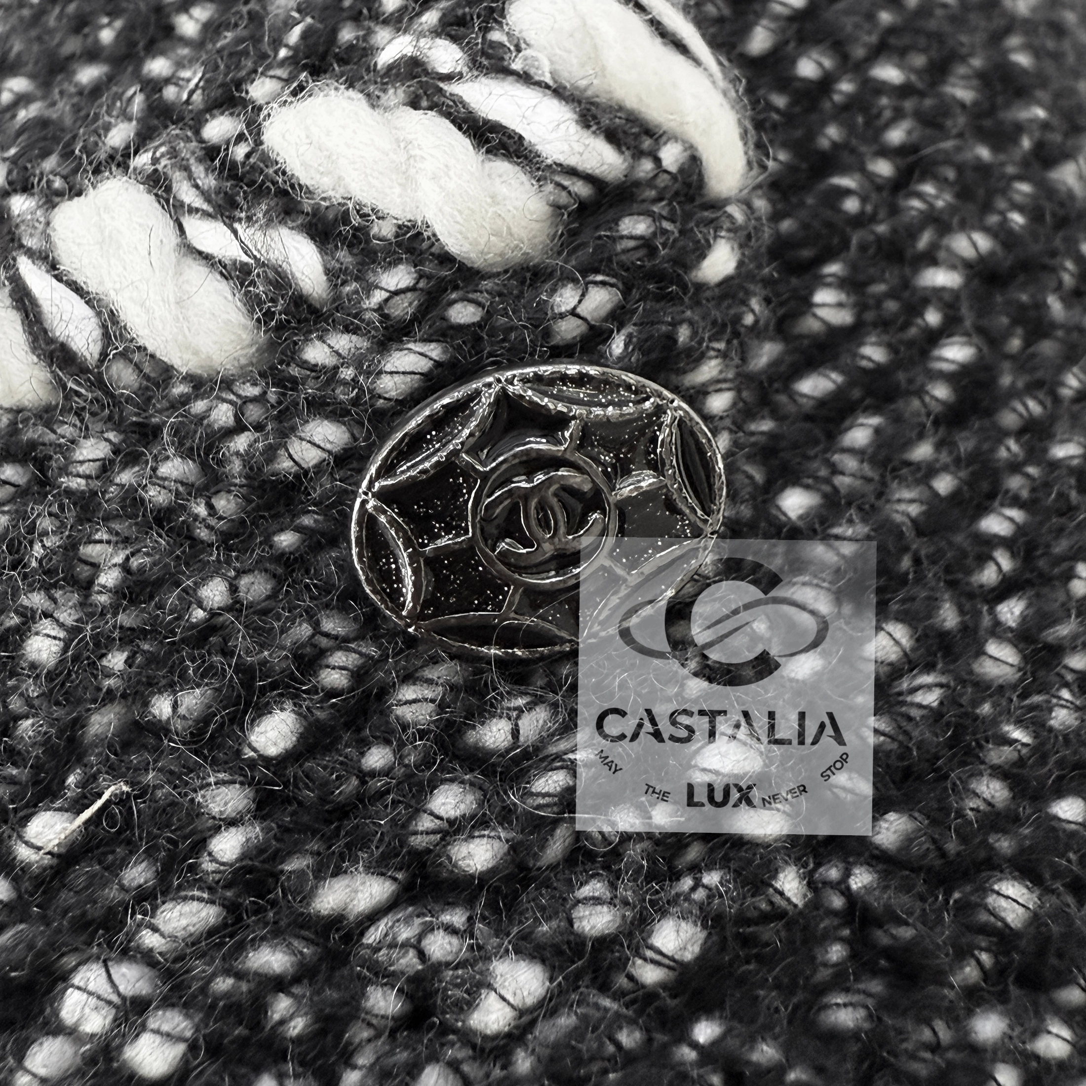 — a delicate CC-logo jewel charm glints at the pocket—a talisman of house mystique