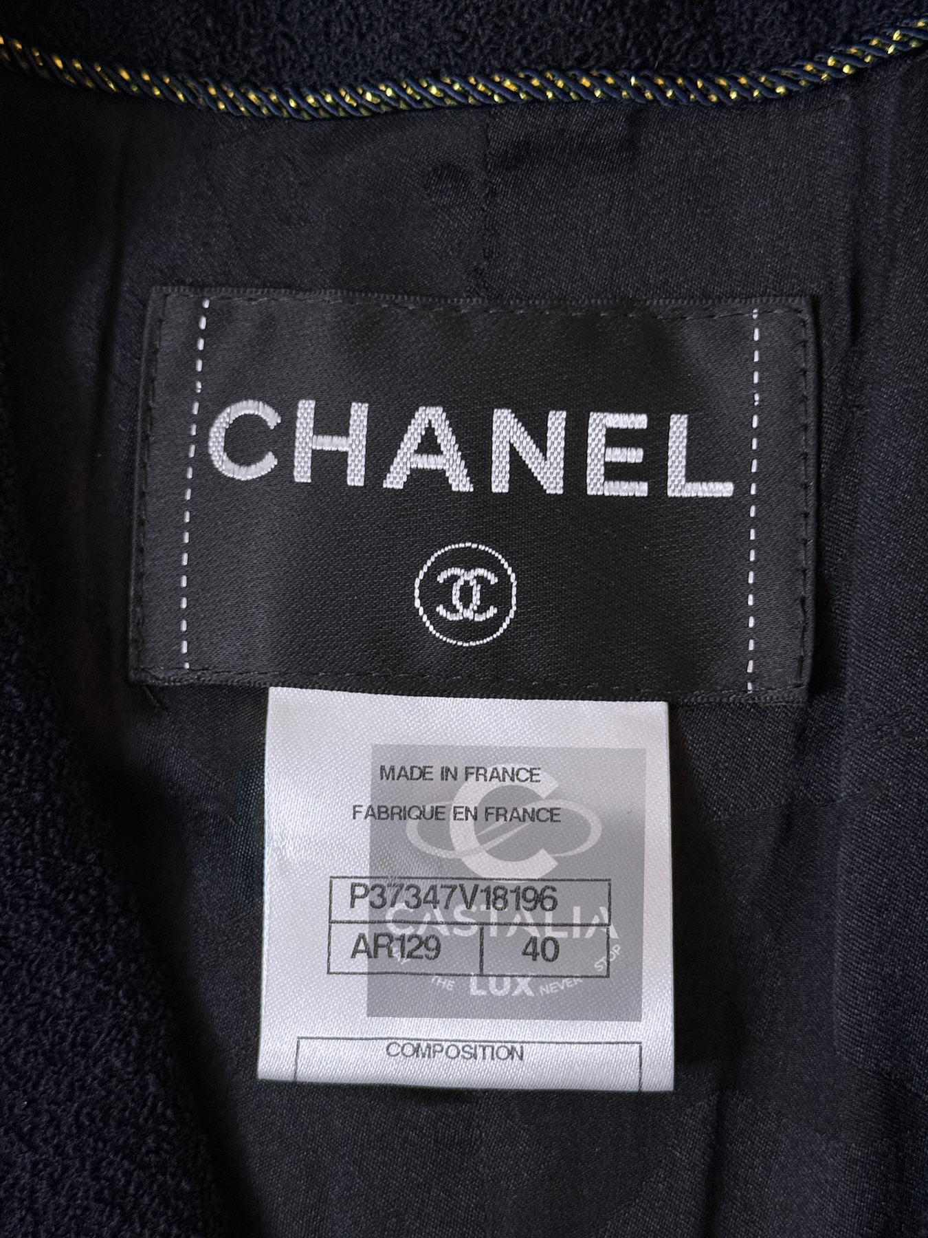 CHANEL Navy Tweed Jacket with Gilded Trim