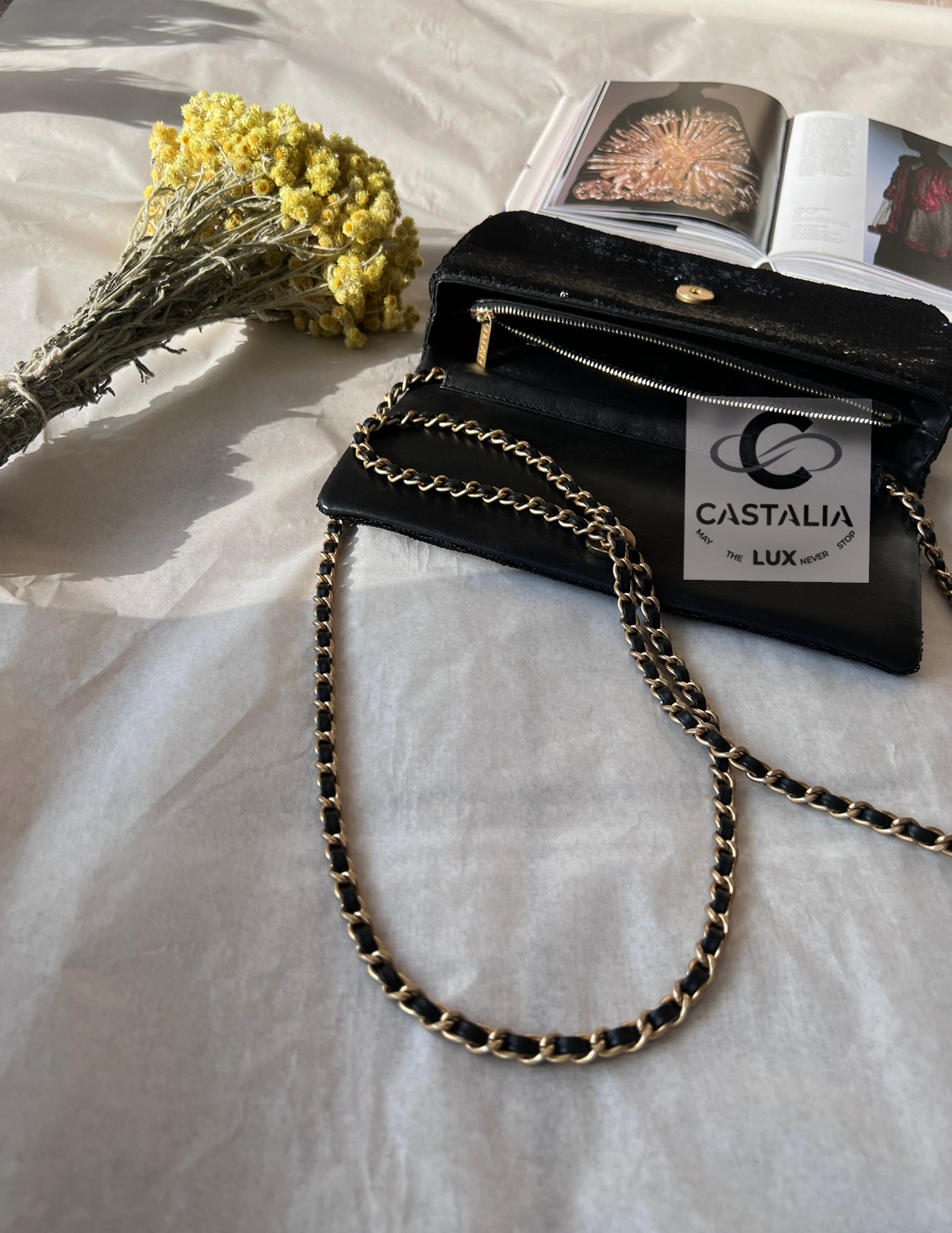 — This rare Chanel bag, fully hand-embellished with more than 6,000 shimmering black sequins, is not merely an accessory — it is a provocation in motion, a wink from the maestro himself
