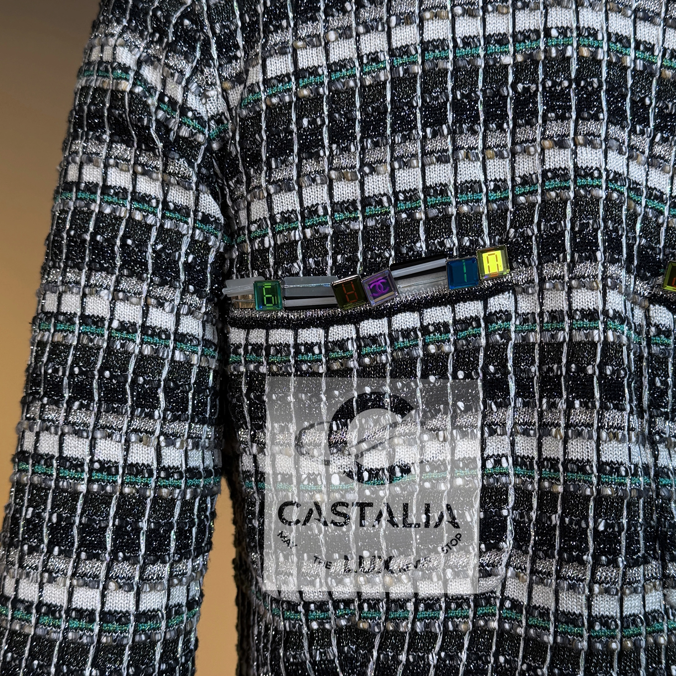 CHANEL Runway Shimmer Jacket with CC Jewel Cubes