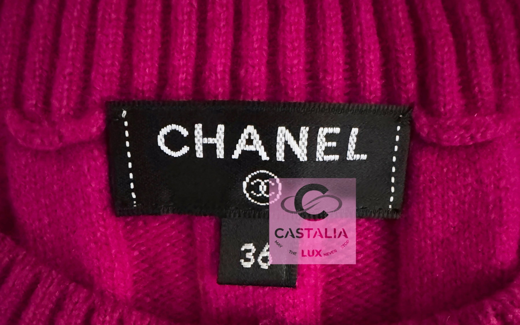 — Crafted from the softest knit in a vivid fuchsia hue, it radiates the confident joy of modern femininity while retaining the architectural grace of Chanel design