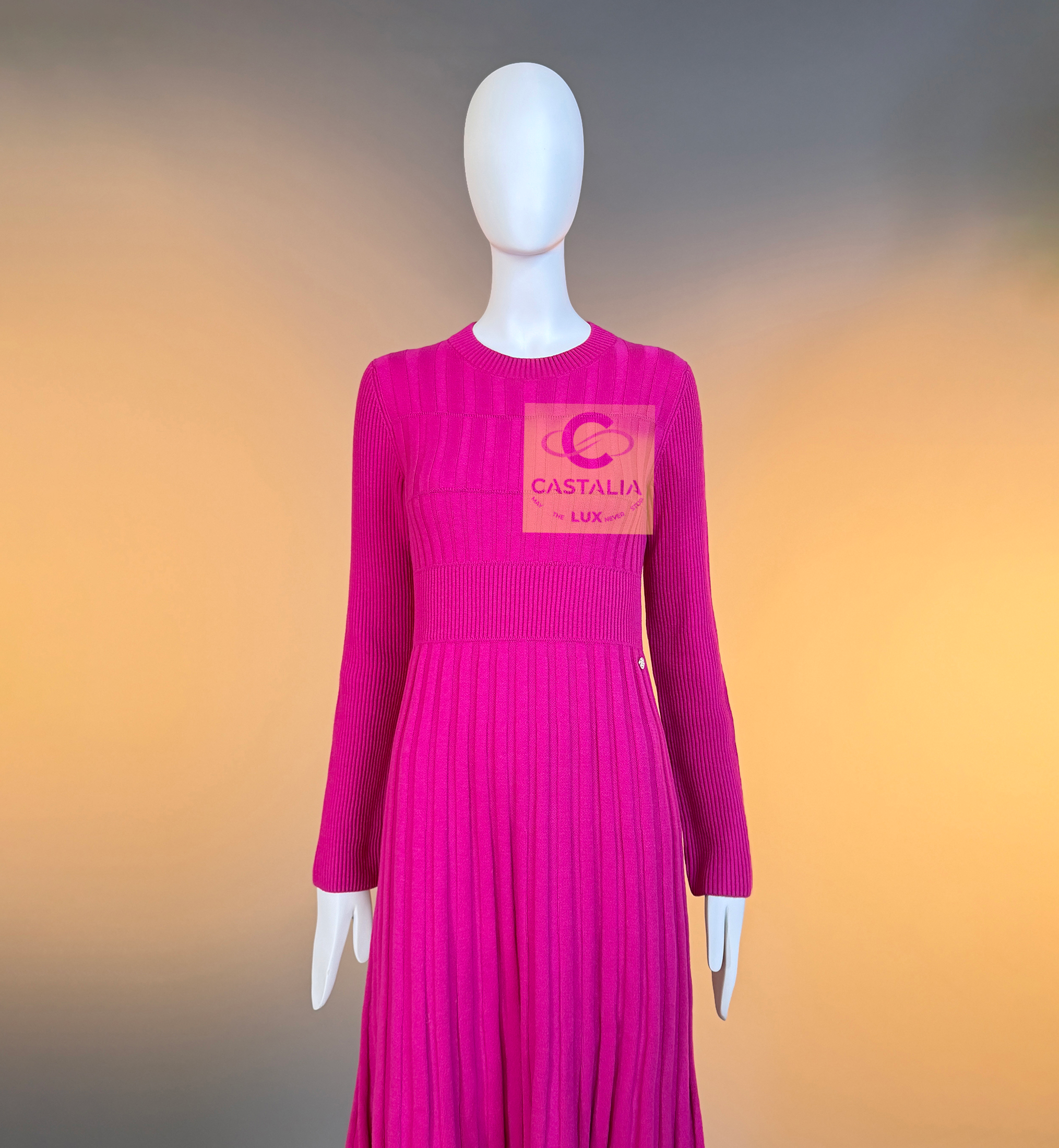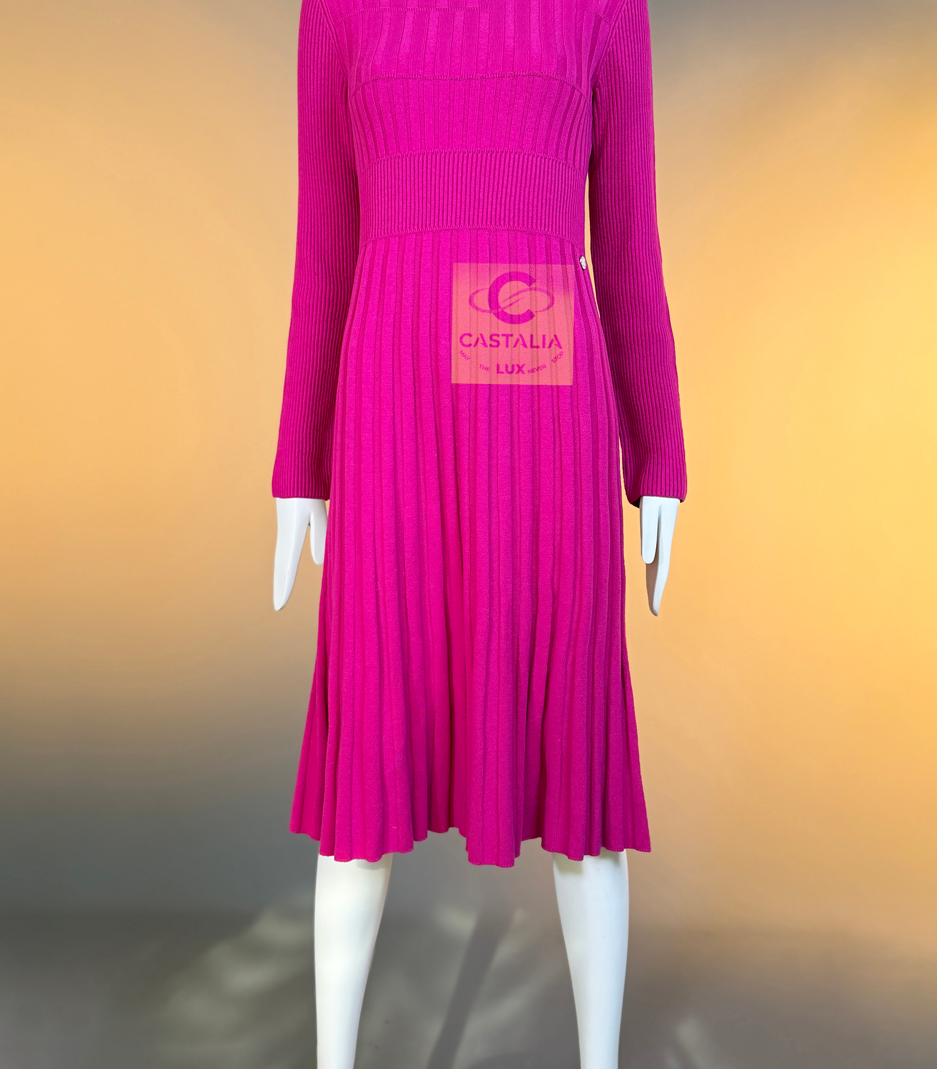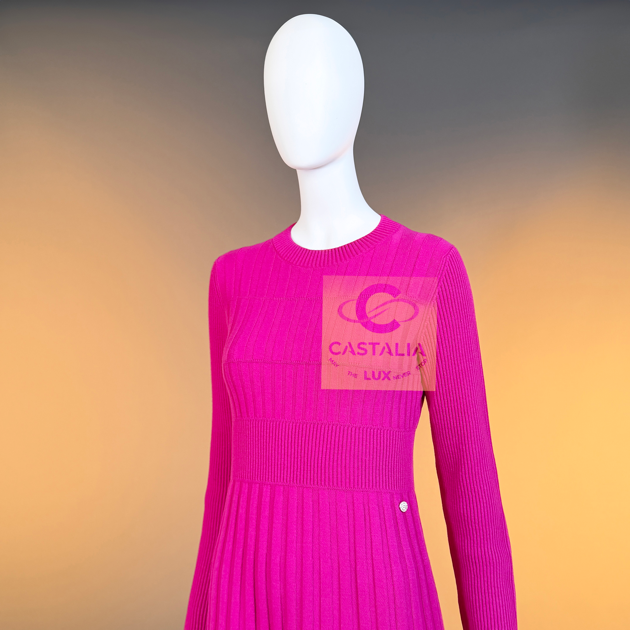 CHANEL · Collectible Vibrant Fuchsia Ribbed Knit Dress with CC Charm