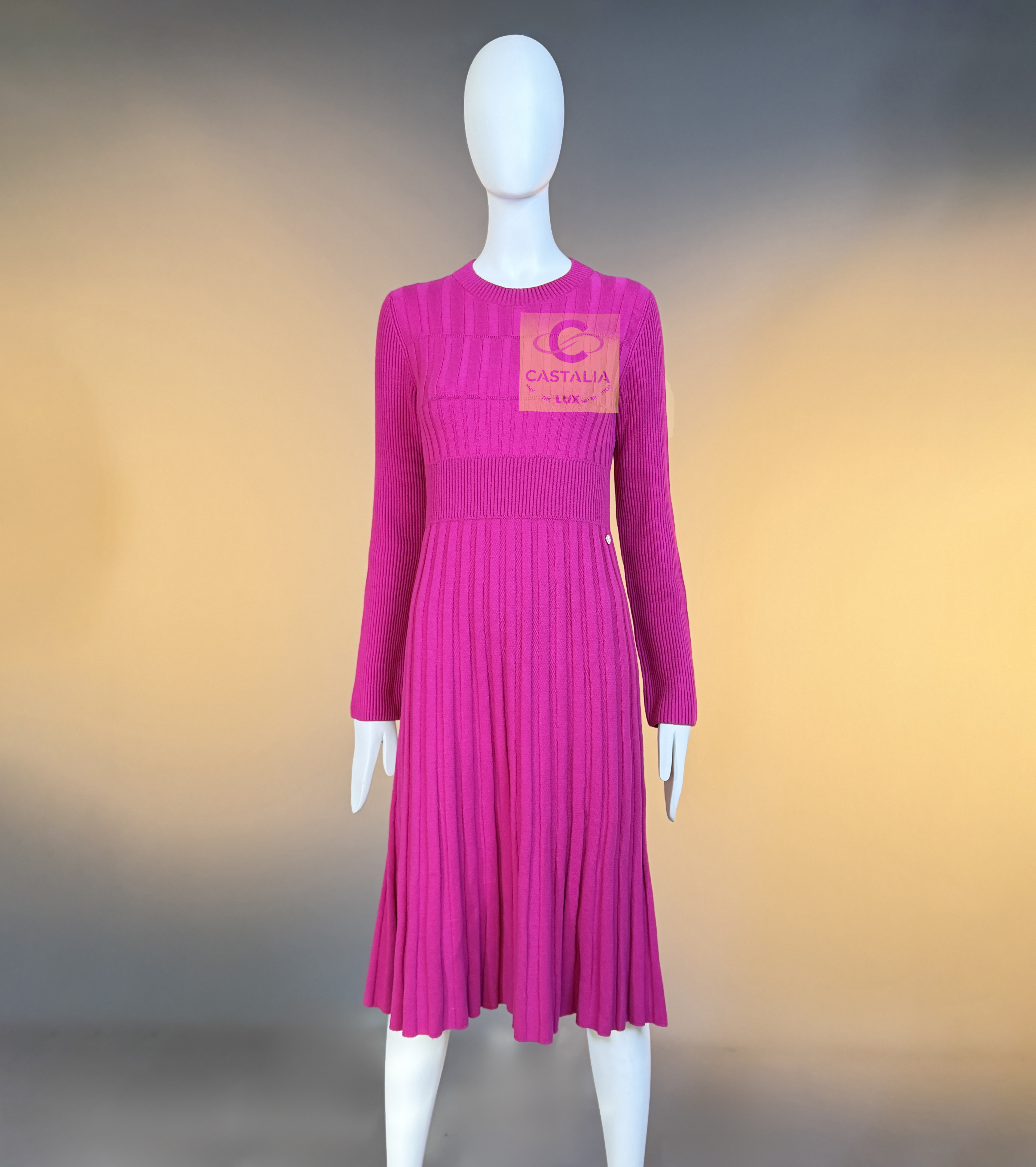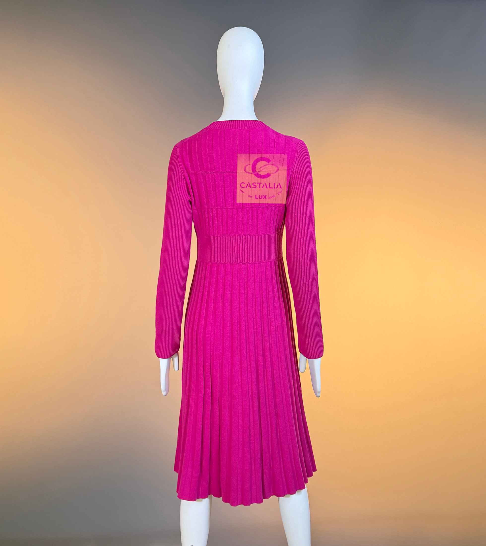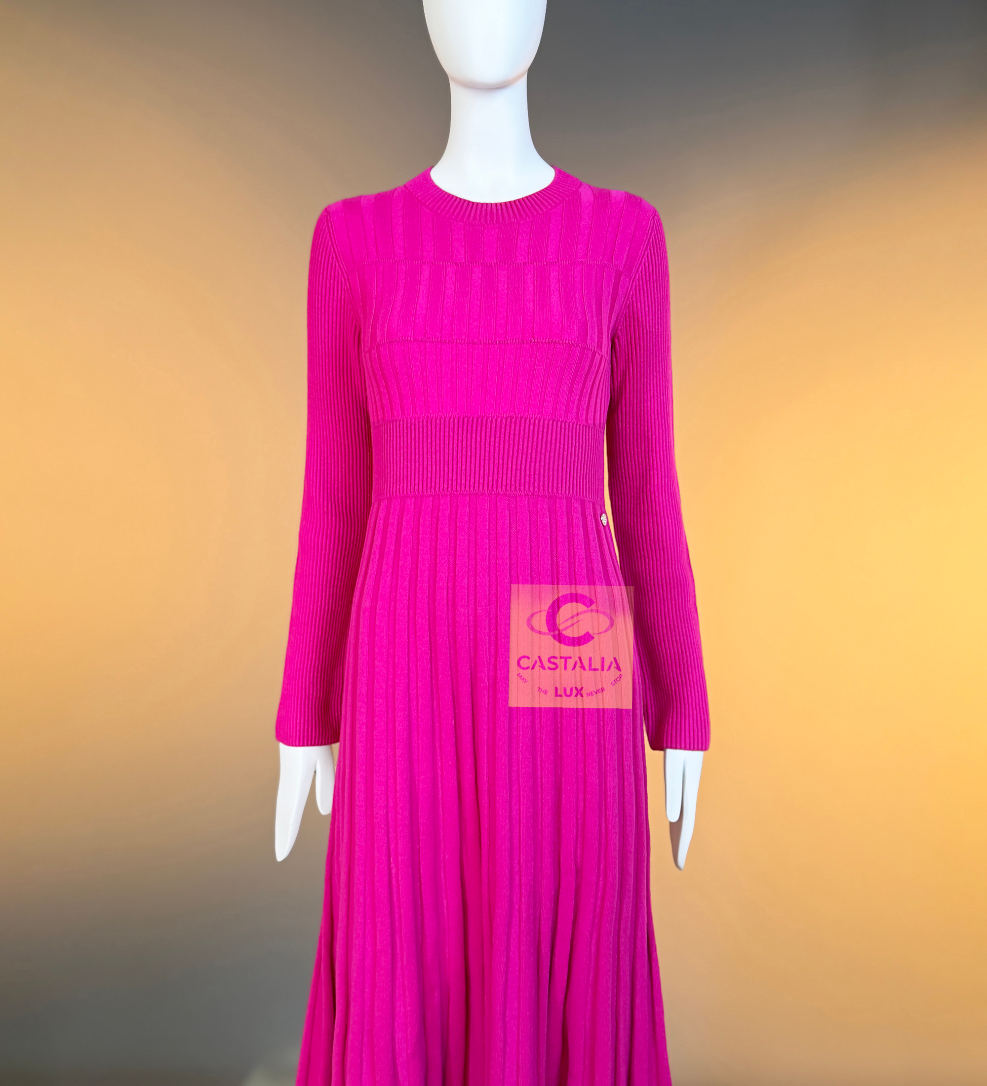 CHANEL · Collectible Vibrant Fuchsia Ribbed Knit Dress with CC Charm
